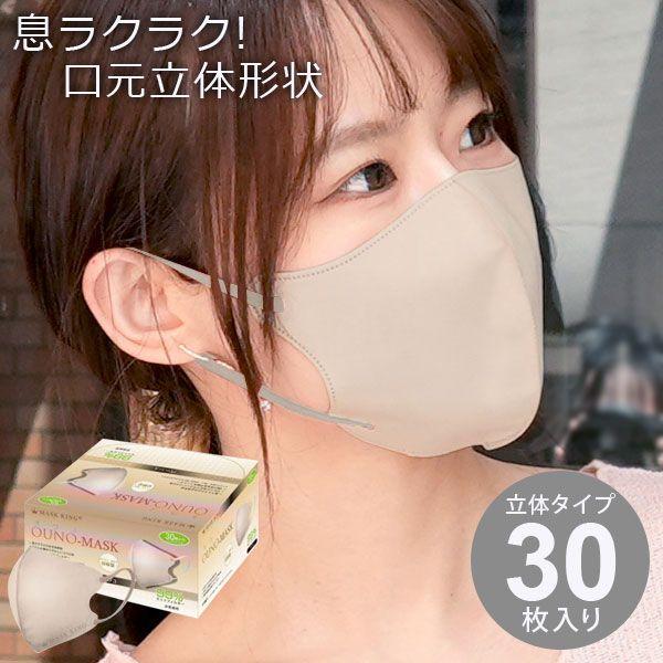 オウノ マスク ベージュ 3層 不織布 口元立体形状で息がしやすい 入数:1箱(30枚入) RF-0314 OUNO-MASK マスク カラーマスク 立体マスク 不織布マスク 使い捨てマスク フェイスマスク 簡易マスク 使い捨て 3層構造 フィルター 3D 立体 通気性 飛沫防止 飛沫 防止 遮断 快適 すっきり スッキリ 小顔 シルエット 男性 メンズ 女性 レディース 男女兼用 ユニセックス 30枚 30P BEIGE