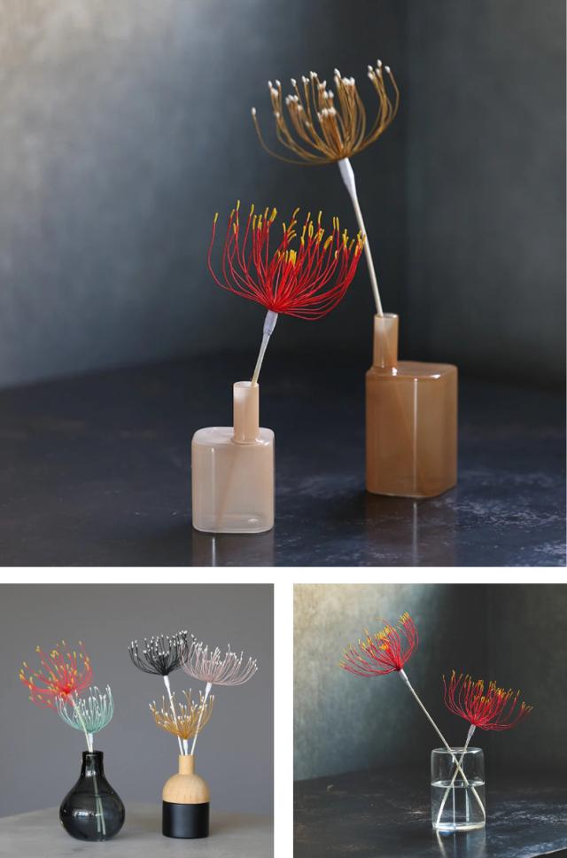 お好みの一輪挿しなどに挿して、造花としても。器を替えるだけでまた違った雰囲気になり、様々なコーディネートでお楽しみいただけます。