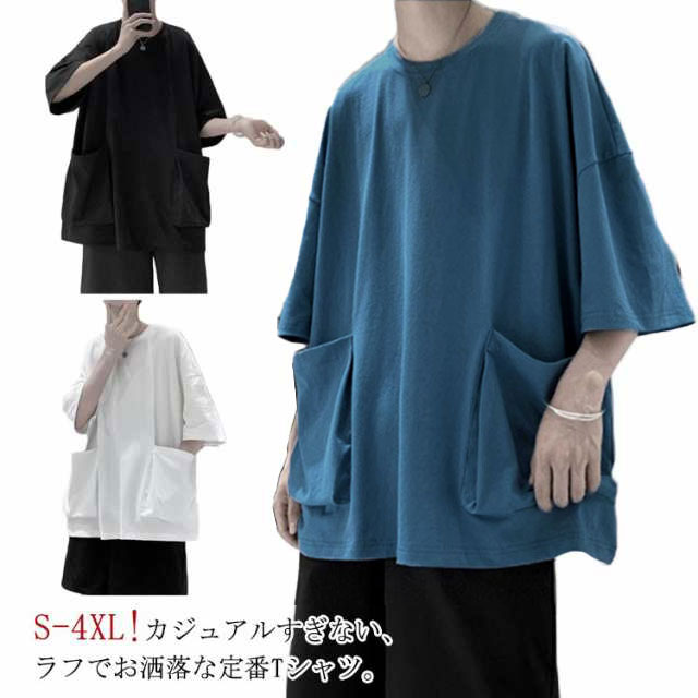 S-4XL!Tシャツ 半袖 メンズ 夏 半そで カットソー メンズtシャツ ポケット付き ティーシャツ ティシャツ 透けない 半袖tシャツ オーバーサイズ 春服 夏服 カットソー 春 夏 秋 薄手 送料無料