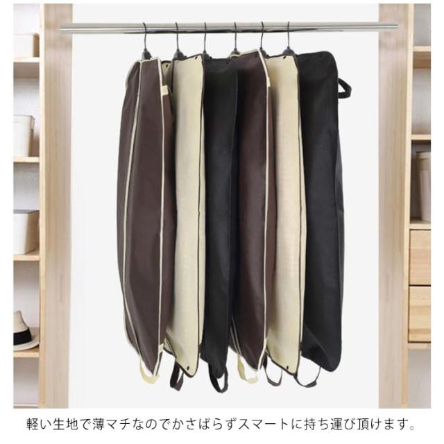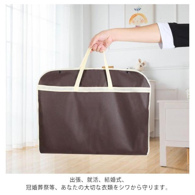 | 通気性に優れた不織布製、ホコリから大切なスーツを守ります。 ビジネススーツをエレガントに持ち運べる収納バグ 大切な服をホコリや汚れからしっかり守って、安心して保管できます。 軽い生地で薄マチなのでかさばらずスマートに持ち運び頂けます。 コンパクトに折りたためるので収納にも場所を取りません。 出張、就活、結婚式、冠婚葬祭等、あなたの大切な衣類をシワから守ります。 | |