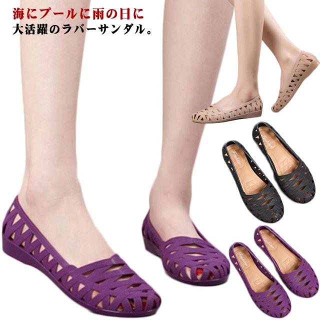 サンダル ぺたんこ フラットサンダル ラバーサンダル レディース ぺたんこサンダル ラバーシューズ ローヒール PVC レインシューズ 軽い 可愛い 婦人サンダル ラバーパンプス 女性 通勤 通学 カジュアル レイングッズ 雨対策