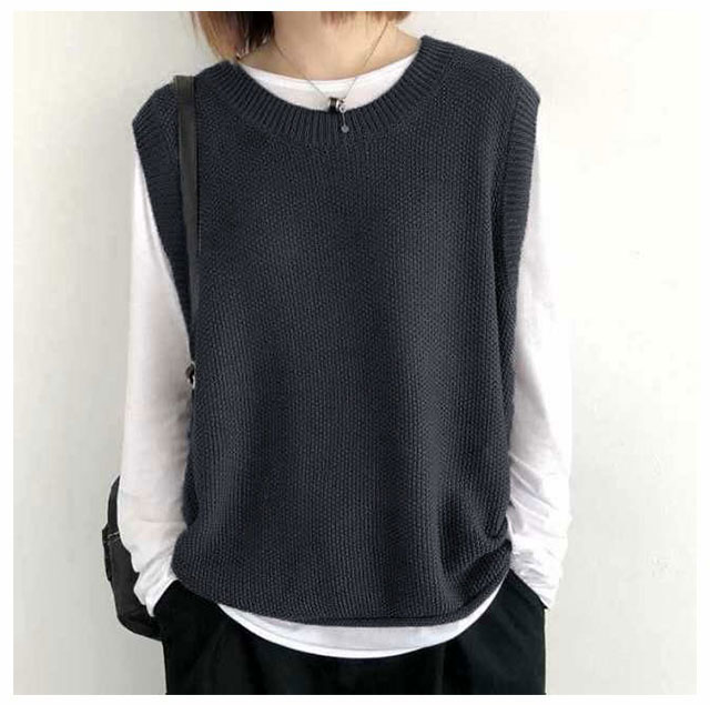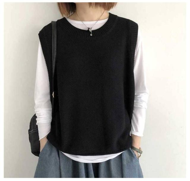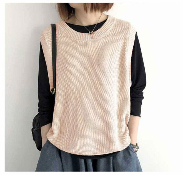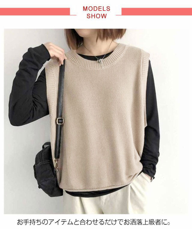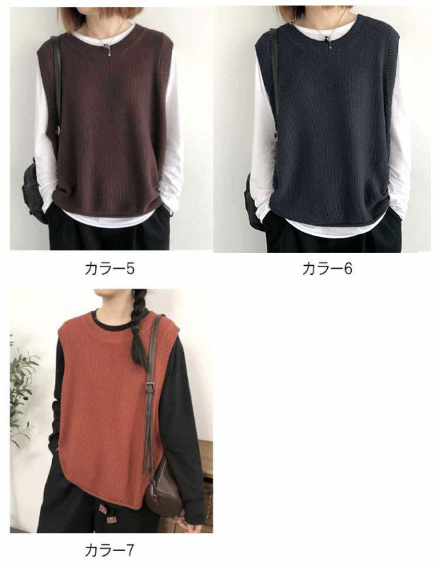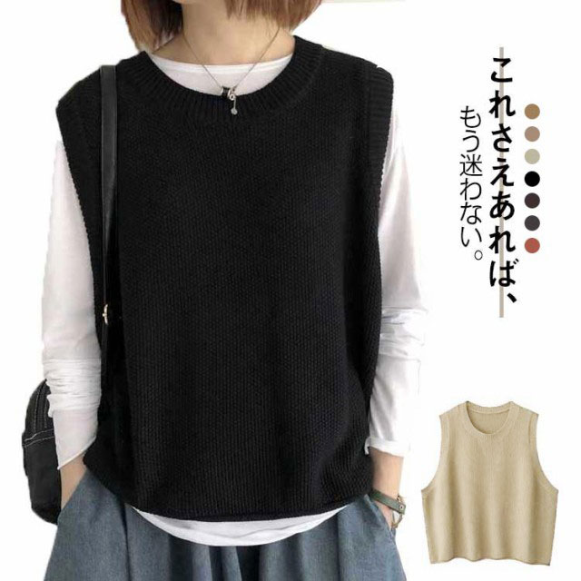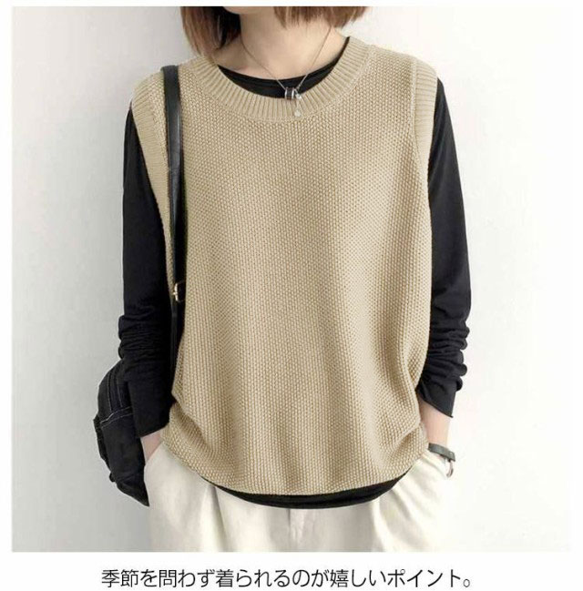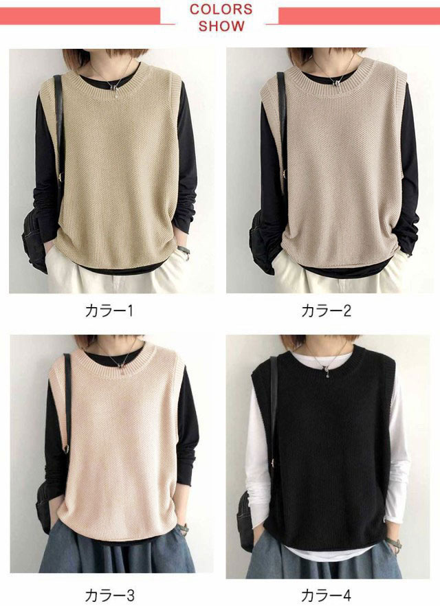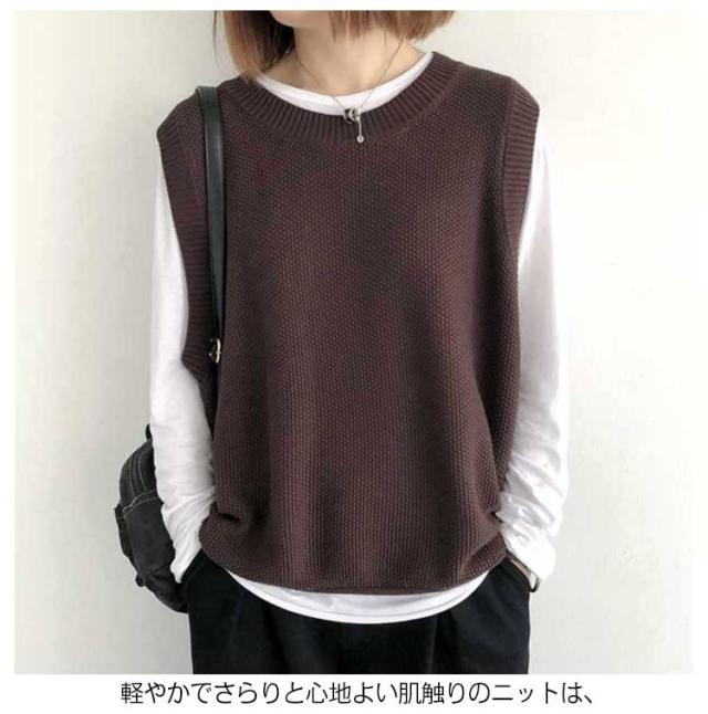 ニット ベスト レディース 春 秋 プルオーバー サマー ベスト レディース 春秋 ニットベスト 春ベスト おしゃれ 着回し トップス 体型カバー ゆったり シンプル カジュアル レイヤード 重ね着 クールネック 30代 40代 50代