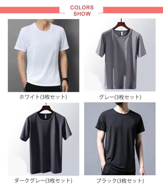 3枚セット!tシャツ メンズ 接触冷感 大人 白 黒 グレー 夏 半袖tシャツ アイスシルク 吸汗速乾 涼しい ひんやり おしゃれ ゆったり カジュアル 無地 スポーツ さらさら ランニングウェア トレニンーグ 大きいサイズ クルーネック 30代 40代 50代