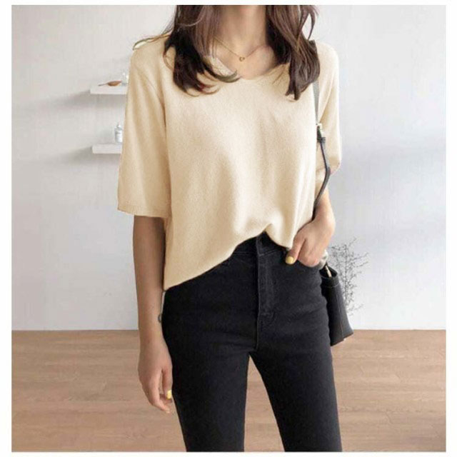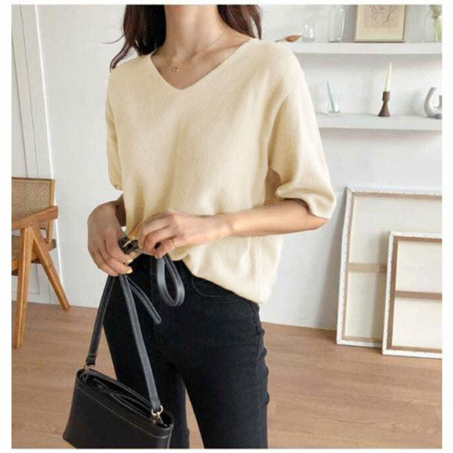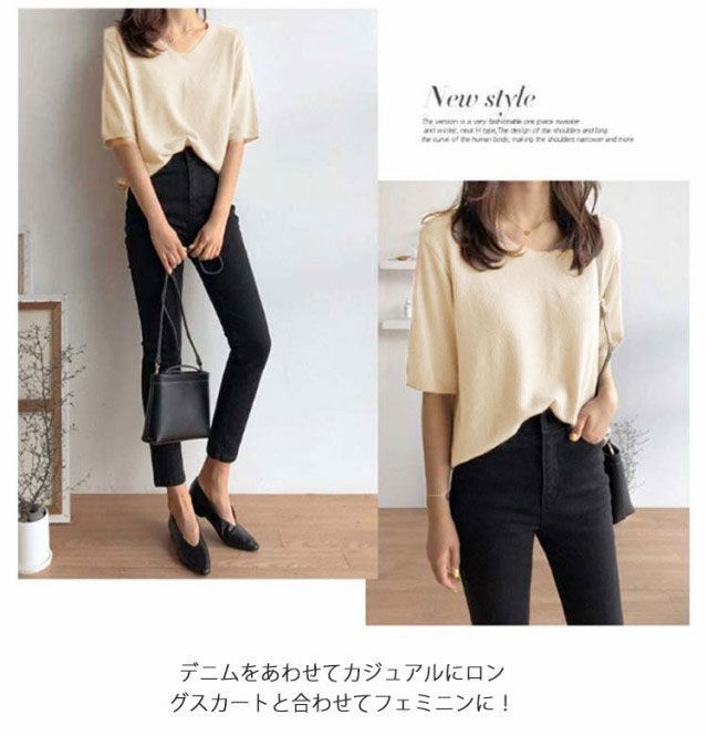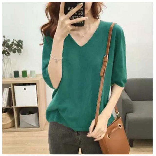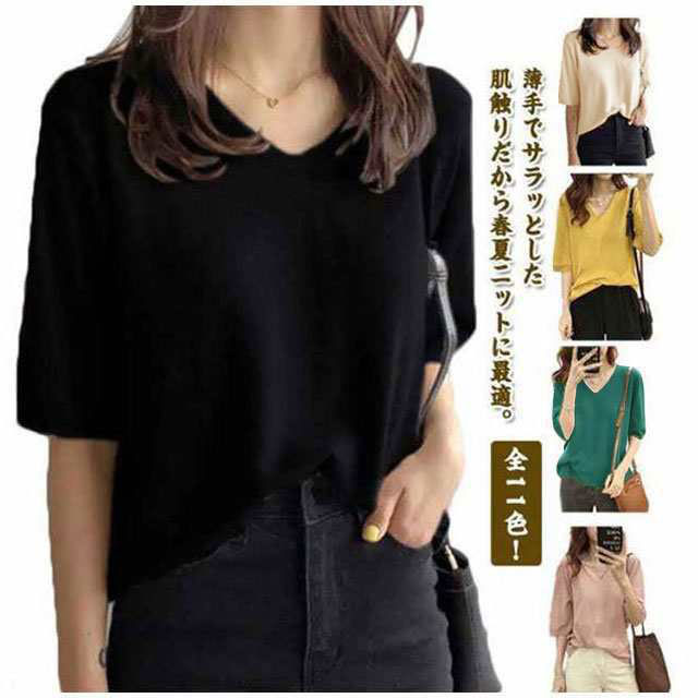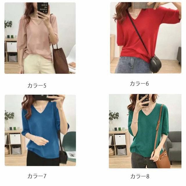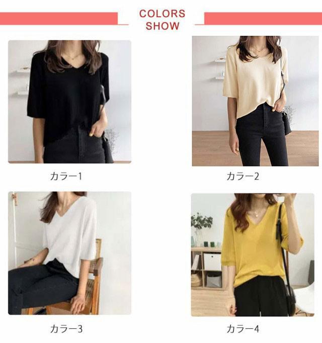 全11色!七分袖 カットソー vネック 薄手 春 夏 レディース ニットセーター 接触冷感 ゆったり 長袖 半袖 サマーニット Tシャツ プルオーバー 大きいサイズ ゆったり カジュアル 通勤 おしゃれ シンプル