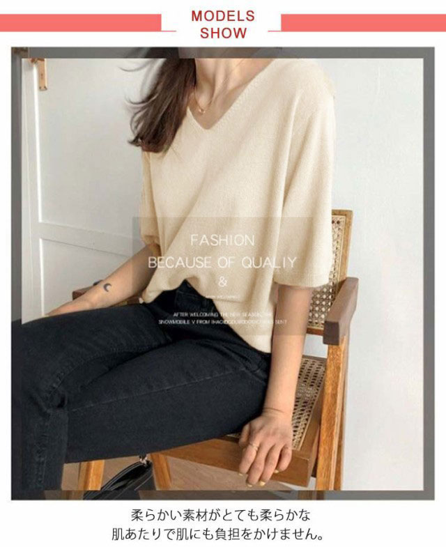 | 薄手でサラッとした肌触りだから春夏ニットに最適。 柔らかい素材がとても柔らかな肌あたりで肌にも負担をかけません。 デニムをあわせてカジュアルにロングスカートと合わせてフェミニンに! デイリーにはもちろん、デートやちょっとしたお出かけにも幅広く活躍! | |