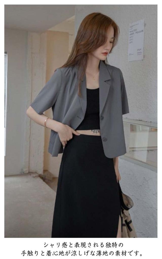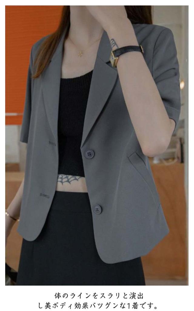 サマージャケット レディース テーラードジャケット ショートジャケット 薄手 ショート丈 半袖 夏 着?せ サマー ジャケット 冷房対策 アウター トップス カジュアル スリムスーツ 春 夏秋 ジャケット ゆったり 無地 フォーマル 涼しい 通勤服 OL 無地 上品 送料無料