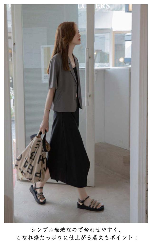 | シンプルなデザインなのでワンピースの上にも合わせられるテーラードジャケット 体のラインをスラリと演出し美ボディ効果バツグンな1着です。 シャリ感と表現される独特の手触りと着心地が涼しげな薄地の素材です。 半袖でスッキリとしたディティールなので、様々なスタイリングに合わせやすく、日差しや冷房対策にも活躍します。 シンプル無地なので合わせやすく、こなれ感たっぷりに仕上がる着丈もポイント! | |