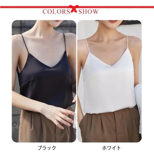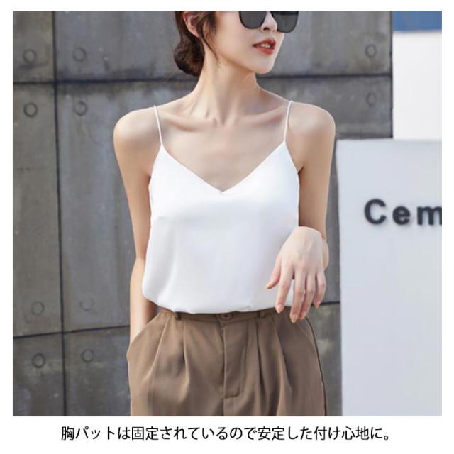 カップ付き キャミソール ブラトップ キャミソールブラ サテン 下着 Vネック ノンワイヤー スーツ インナー トップス タンクトップ シルクタッチ サテンスリップ レディース オフィス ノースリーブ フォーマル ビジネス おしゃれ 仕事