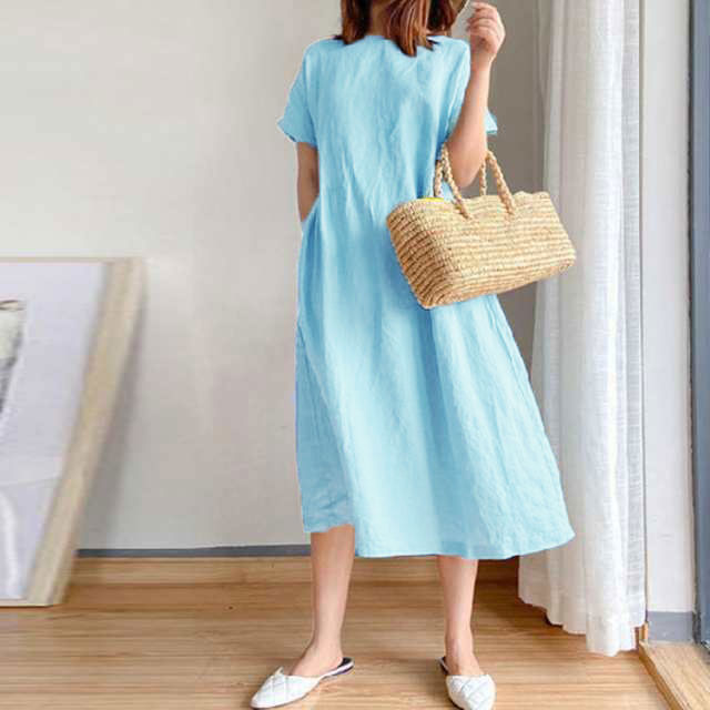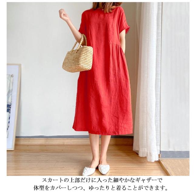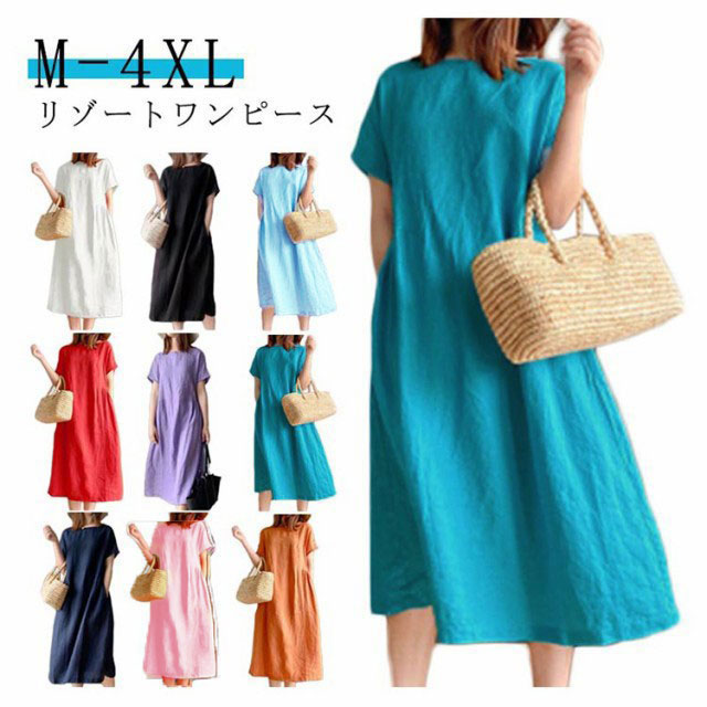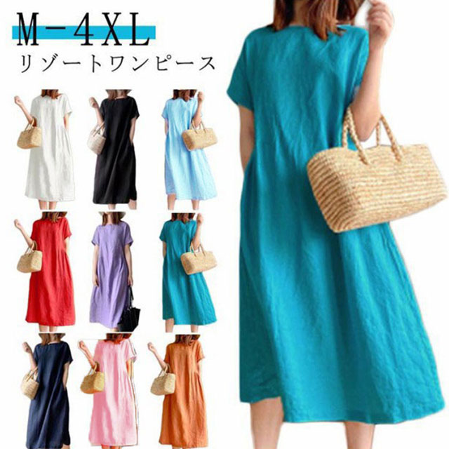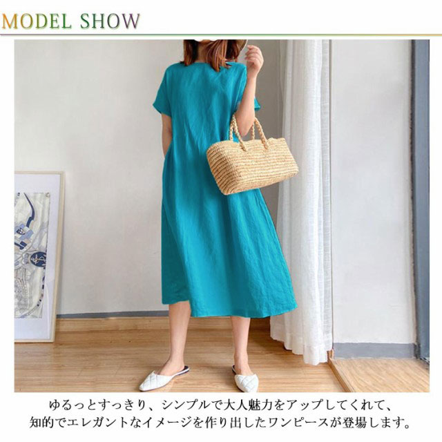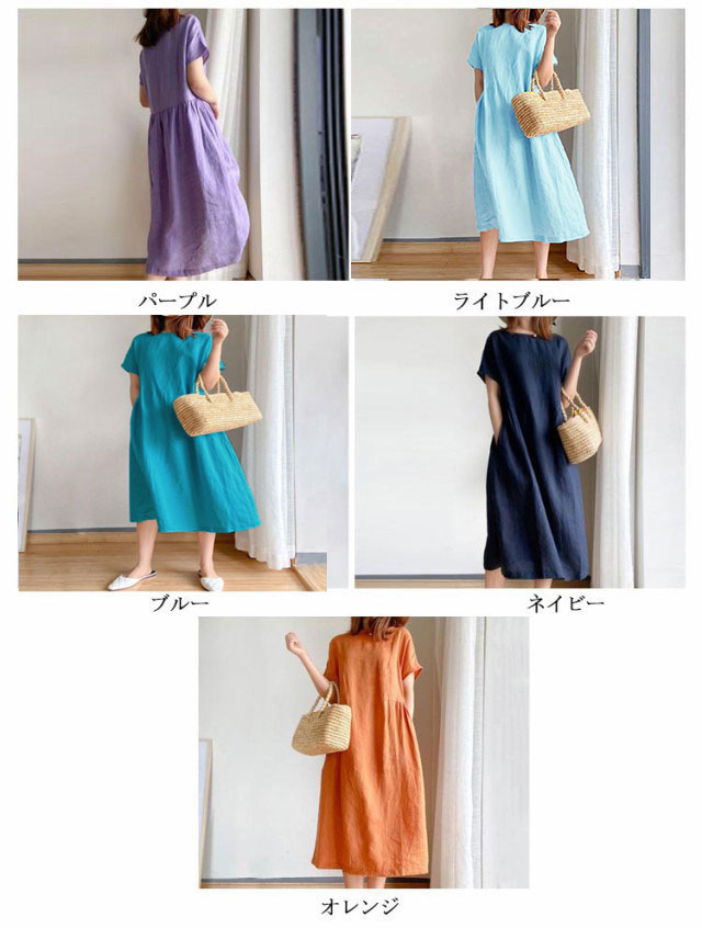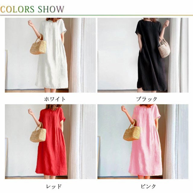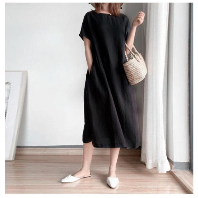 ワンピース レディース ワンピース ナチュラル 半袖 薄手 涼しい おしゃれ 袖あり ミモレ丈 ロング丈 カジュアル 春 夏 春夏 ワンピ ドレス シンプル 森ガール ブラック 黒 無地 20代 0代 40代 50代