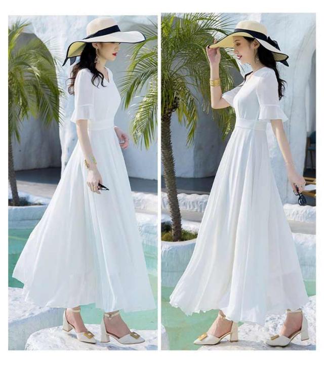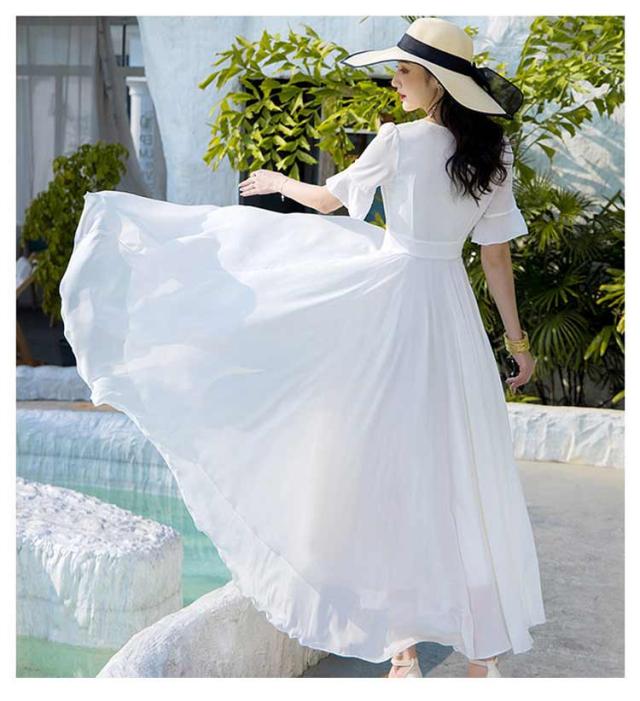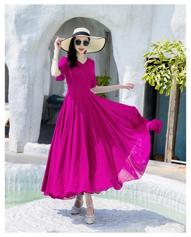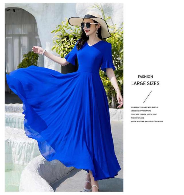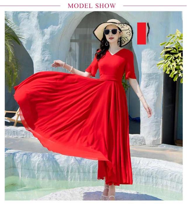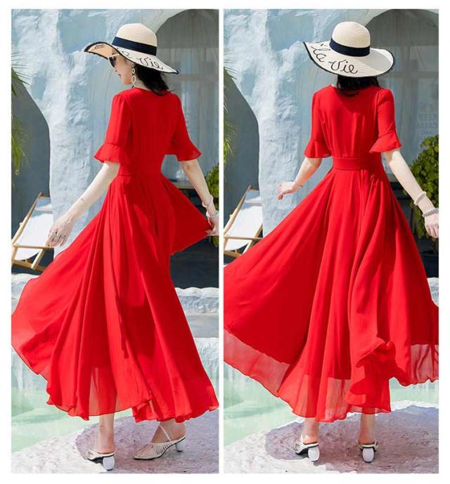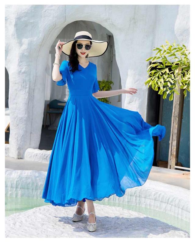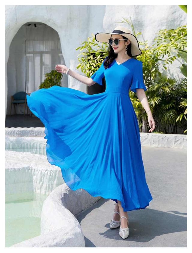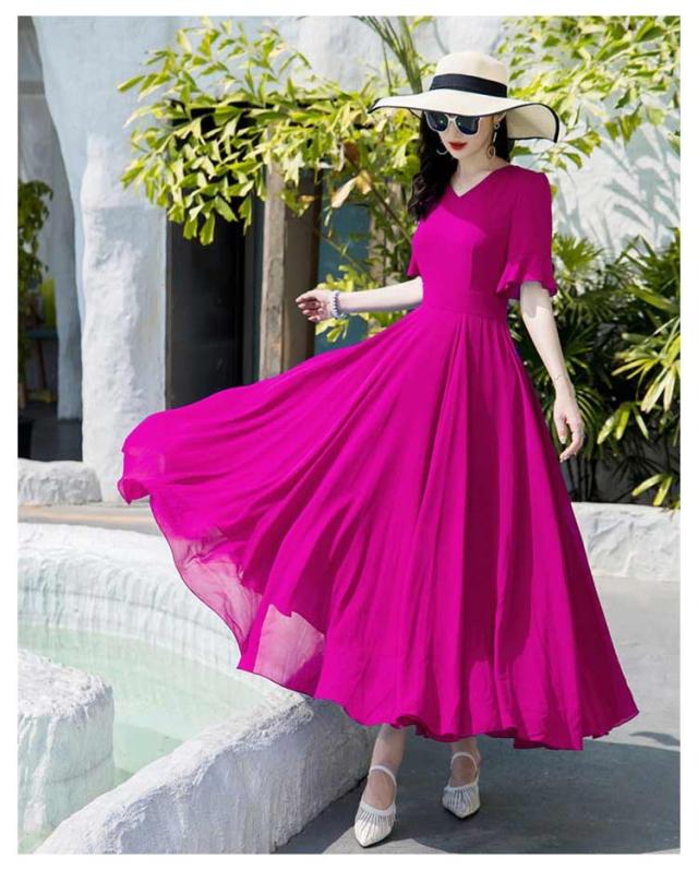 マキシワンピース サマーワンピース レディース 夏 半袖 リゾートワンピース ボヘミアン ロング丈 フレアワンピース 純色 フリル袖 マキン丈 夏ワンピー 体型カバー リゾート カジュアル パーティー デート ビーチ 海 30代 40代 50代