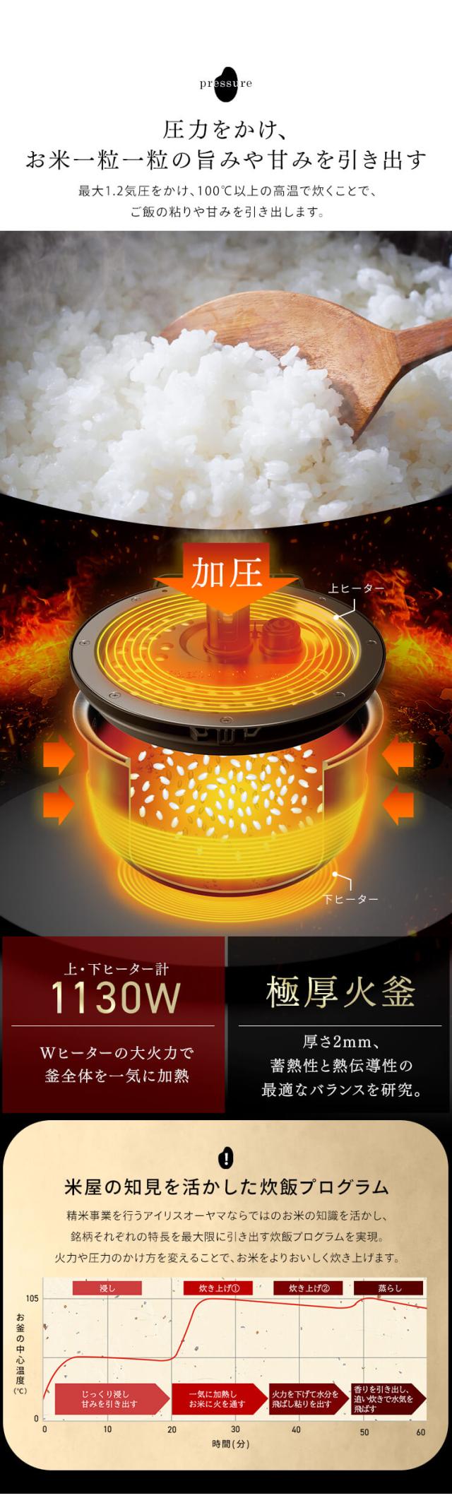 (検索用:炊飯器 圧力IH 5.5合 炊飯ジャー 圧力IH ジャー炊飯器 5.5合 圧力ih ihジャー 5.5合炊き ご飯 ごはん 白米 飯 炊きたて 炊飯 ih5.5合 ih5合 選べる食感 おかゆ 雑穀米 炊き込みご飯 玄米 麦飯 旨み うまみ おしゃれ 新生活 ih 5.5合炊き 5合炊き 圧力 一人暮らし 5合 5.5合 自動調理メニュー Wヒーター 大火力 アイリスの炊飯器 アイリス 白 4967576682985)
