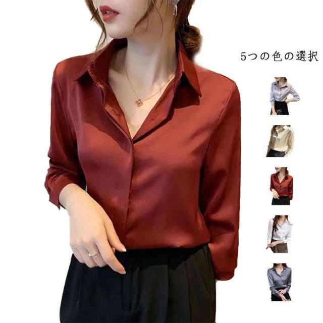 vネック シフォントップス レディース ブラウス おしゃれブラウス インナーブラウス 無地ブラウス フォーマルブラウス シンプル カジュアル オフィス 長袖 襟付き ブラウス シフォン おしゃれ 大きいサイズ きれいめ 春夏 トップス 通勤 ブラウス ゆる 大人 送料無料
