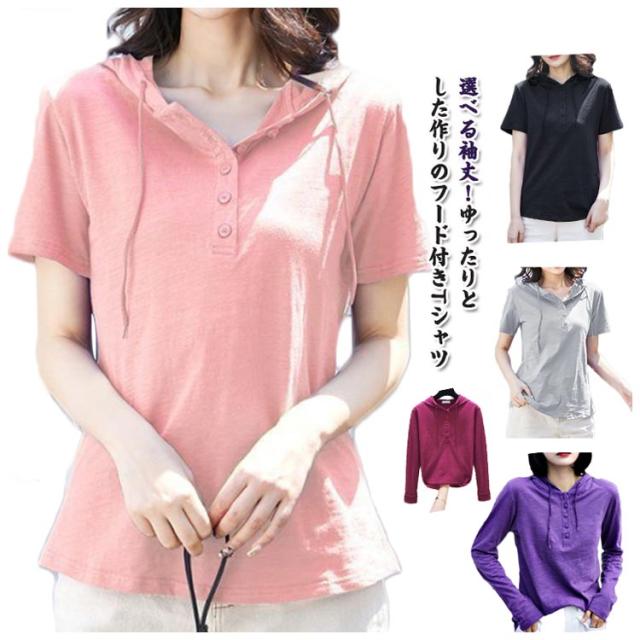 パーカー 薄手 春秋 Tシャツ ゆったり フード付きTシャツ 長袖 半袖 レディース 夏 カットソー ロンT カットソー プルオーバー カットソー 柔らかい トップス フード付き ゆったり 体型カバー 大きいサイズ 無地 カジュアル シンプル 通勤 送料無料