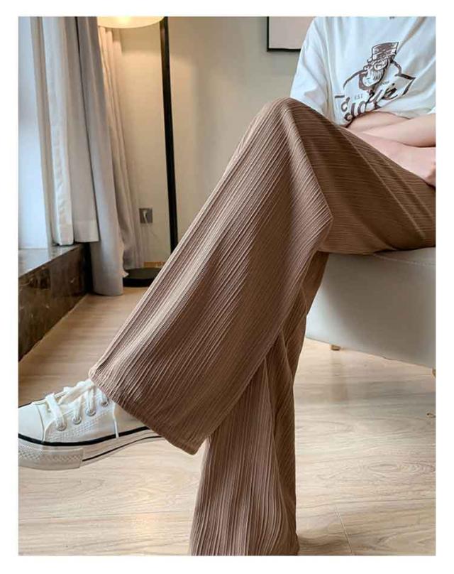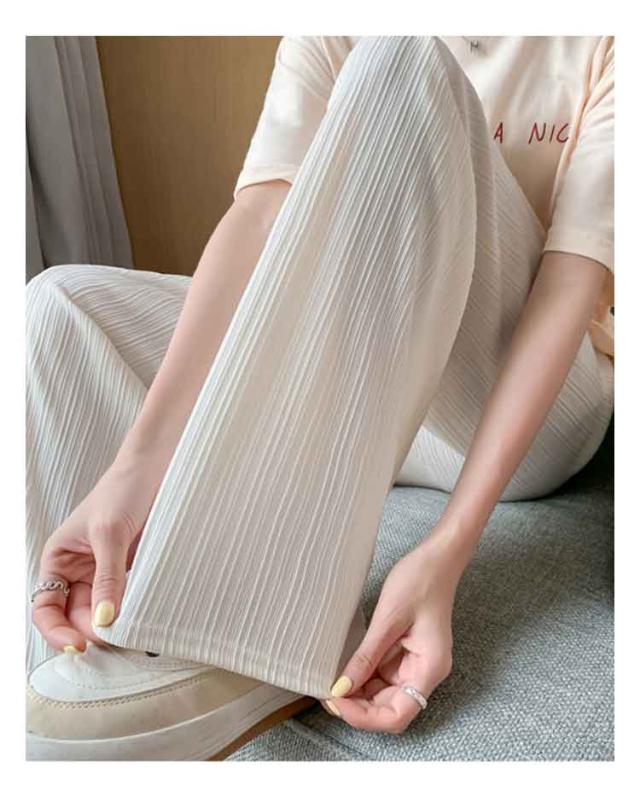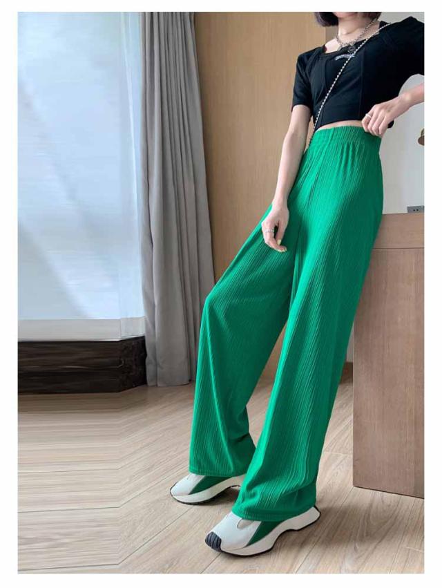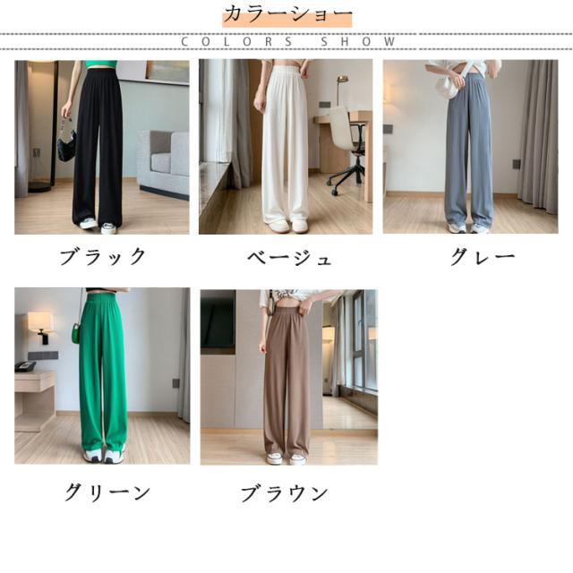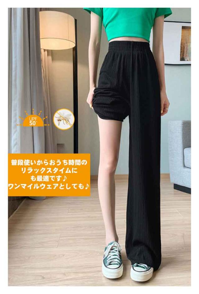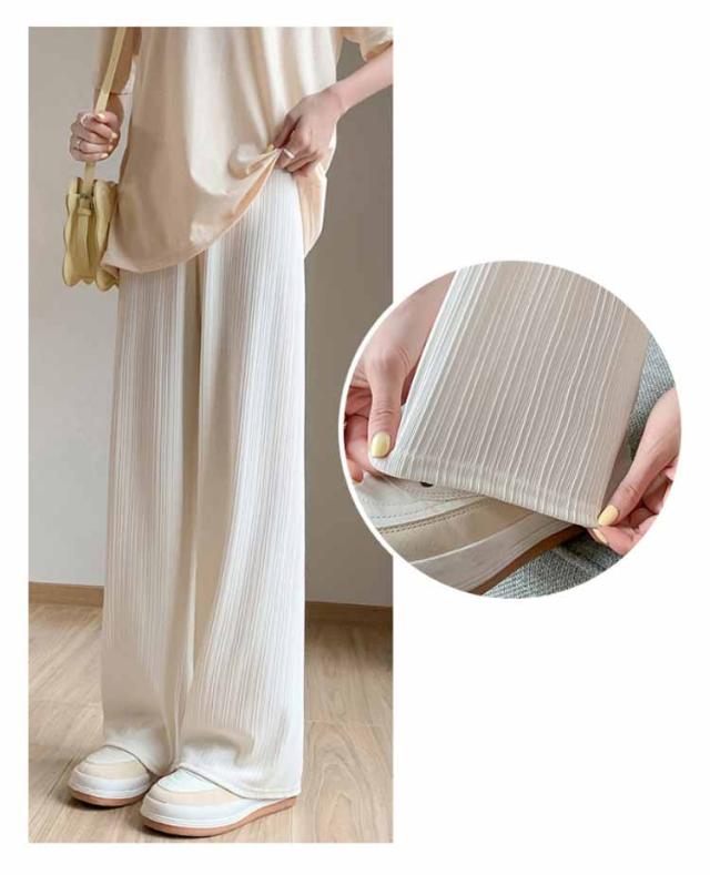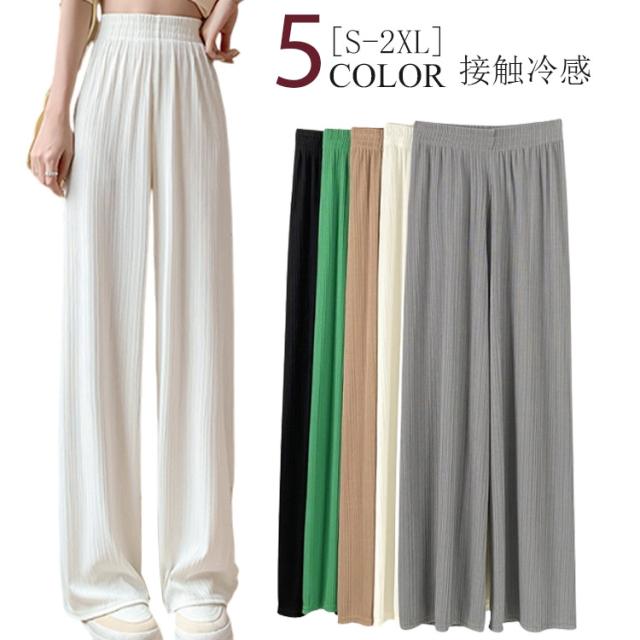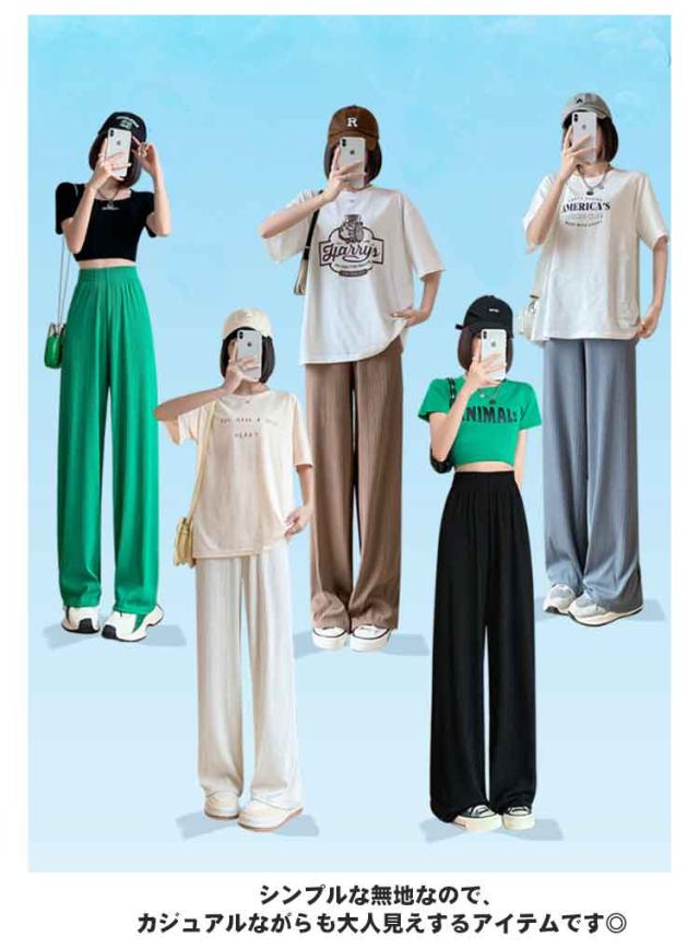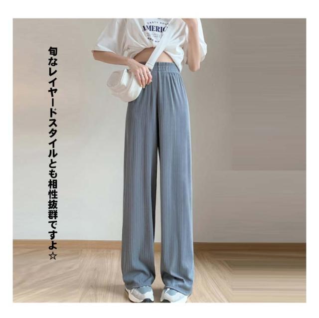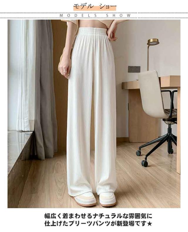 接触冷感 さらてろ ワイドパンツ レディース 春 夏 秋 薄手 ゆったり ストレート カジュアル ロングパンツ 涼しい プリーツパンツ ロング ワンマイルウェア ひんやり ワイド シャリ感 プリーツ ウエストゴム 美脚 シルエット