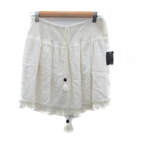 【中古】未使用品 ザラ ベーシック ZARA BASIC フレアスカート ミニ丈 フリンジ S オフホワイト /HO19 レディース