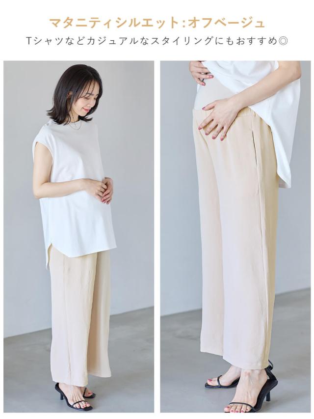 ローズマダム Rosemadame マタニティ 接触冷感 ストレートパンツ 産前産後 無地 カジュアル オシャレ 通勤用 ポケット付き ゆったり ひんやり感 高見え 産後シルエット リラックス 体型カバー