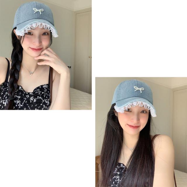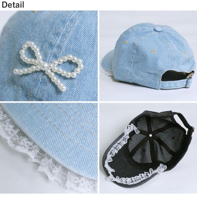 全品送料無料一部除く パールリボン レース デニムキャップ【即納】キャップ 帽子 リボン フェイクパール フェイクパールリボン 韓国カジュアル 韓国ガーリー フレンチガーリー 調節可能 レディース 韓国 Y2Kファッション 韓国ストリート 流行り トレンド かわいい