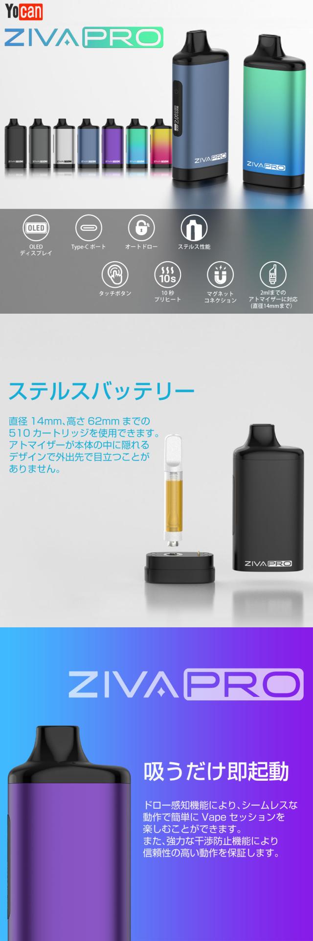 Yocan ZIVA PRO MOD CBD ステルスバッテリー スレッド 510規格 650mAh