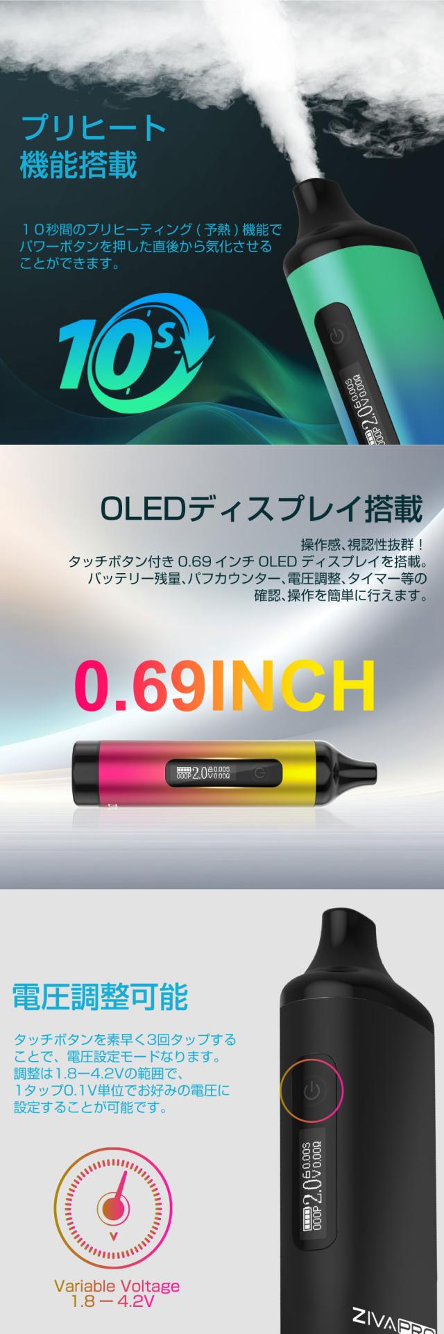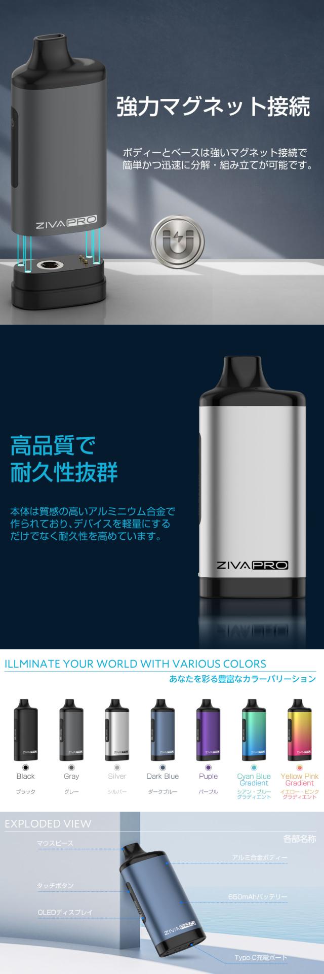 CBD ステルス バッテリー CBD リキッド ヴェポライザー アトマイザー CBD ワックス 510 規格 カートリッジ バッテリー 電子タバコ ベイプ VAPE CBDリキッド 充電 アトマイザー 液晶 CBD オイル フルスペクトラム Yocan ZIVA PRO ZIVA プロ 650mAh