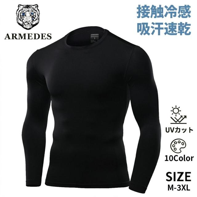 ARMEDES アルメデス 接触冷感 コンプレッション インナー メンズ 長袖 クルーネック 丸首 UVカット 紫外線対策 吸汗速乾 通気性 ストレッチ スポーツインナー 加圧シャツ トレーニング ジム AR52 ゴルフ 野球 ランニング 作業着 夏用 涼しい ひんやり 下着 肌着