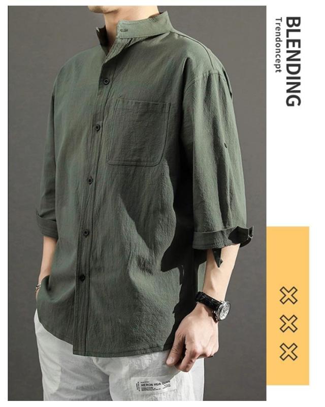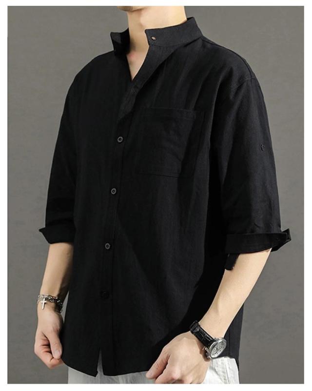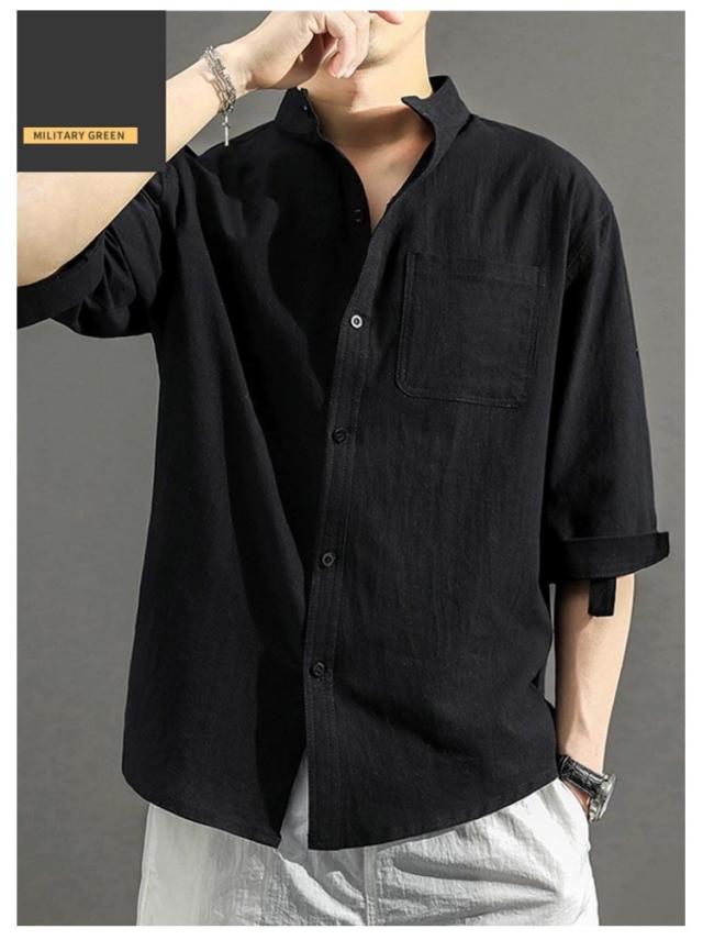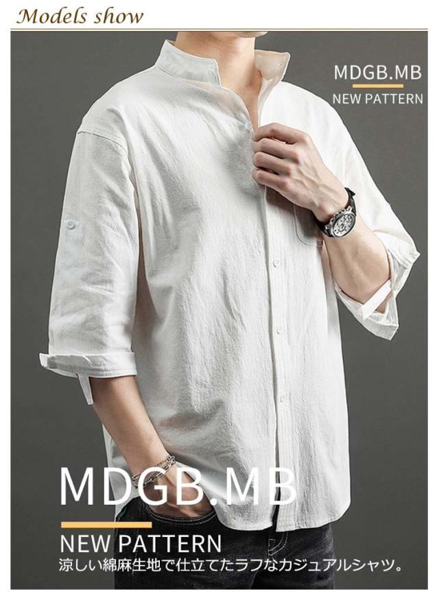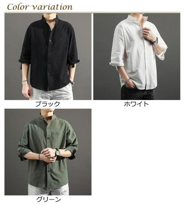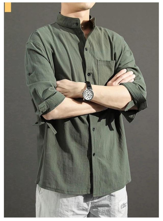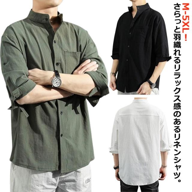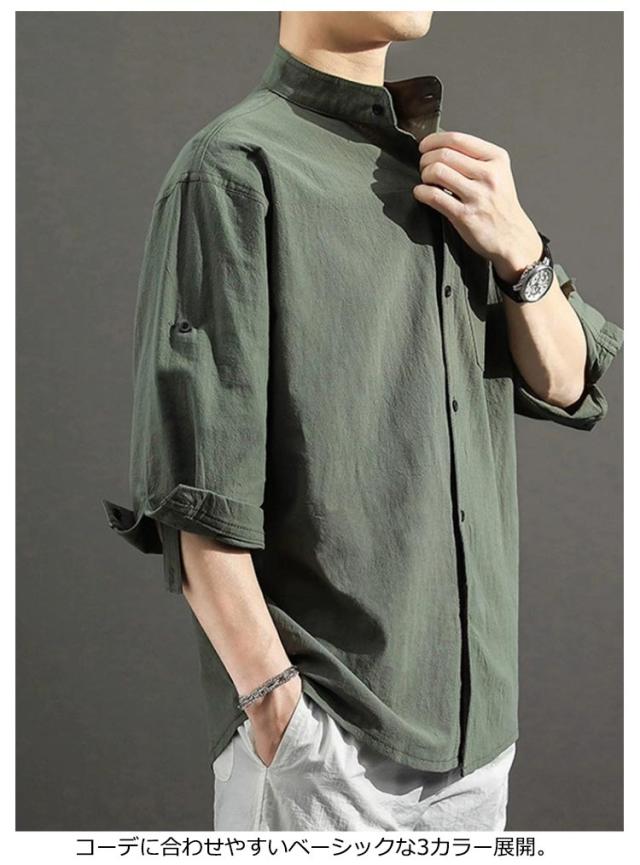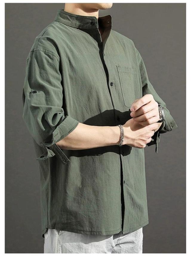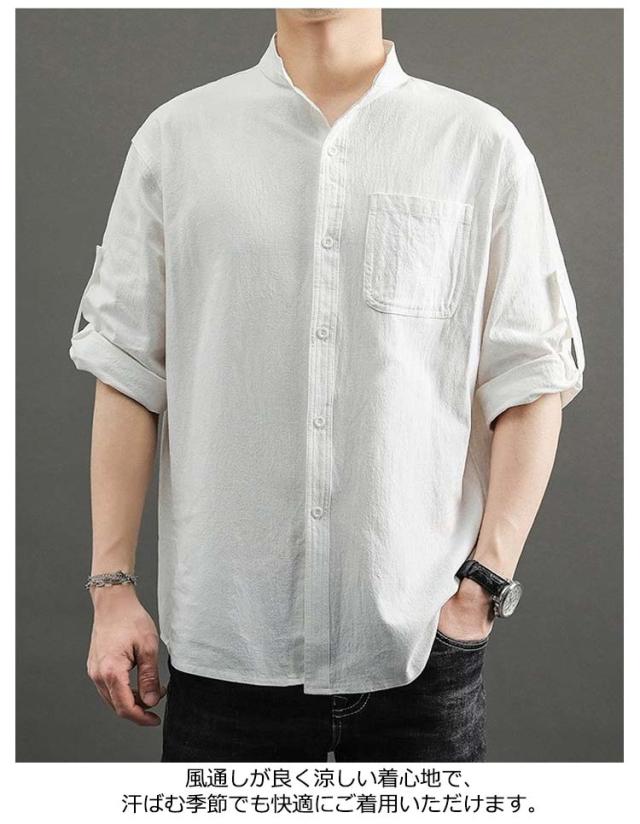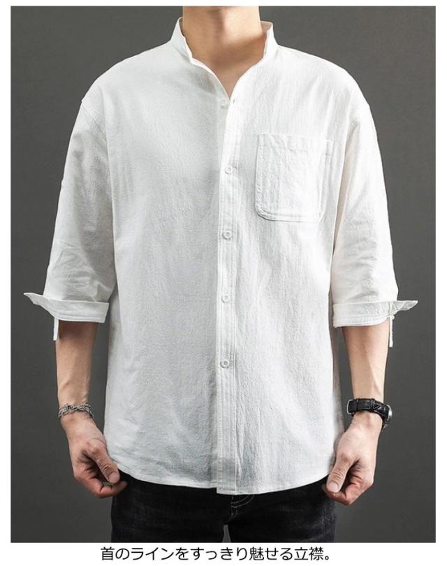 送料無料 無地 メンズ リネンシャツ 春服 綿麻 カジュアルシャツ リネン混 大きいサイズ 綿麻シャツ 七分袖 コットンリネン シャツ 夏服 7分袖 スタンドカラー 送料無料 涼しい 夏 トップス 春 前開き ゆったり 通気性 シンプル カジュアル ギフト