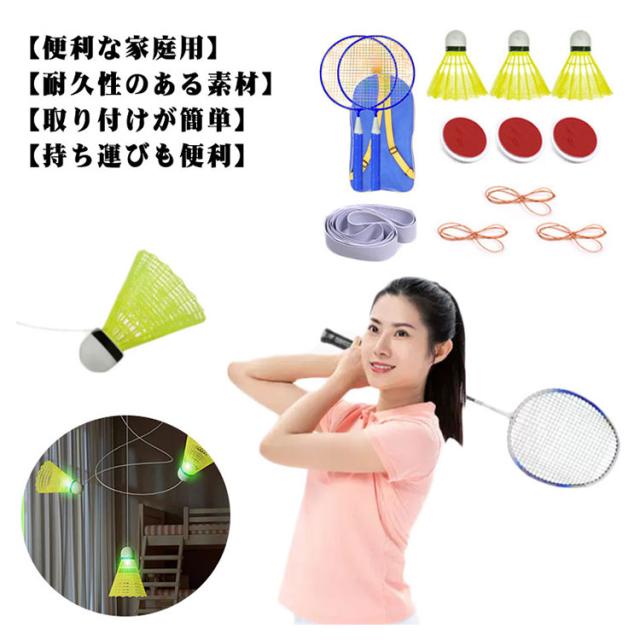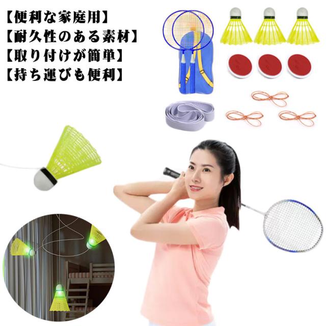 室内バドミントン 大人 ダブル 自動リターン ラケット*2+ボール*3個セット バドミントン トレーナー 自己粘着 セルフトレーニング 自発光 室内 ジュニア キッズ 子供 子供用 大人用 室内 親子 スポーツ