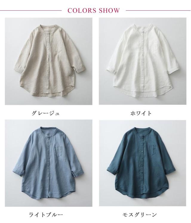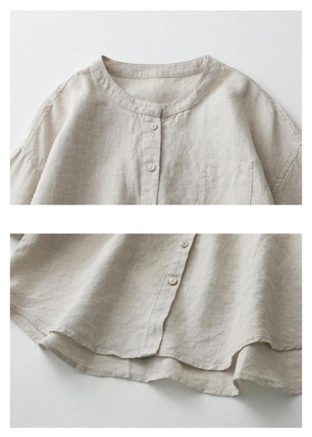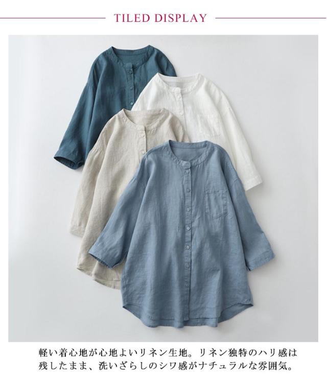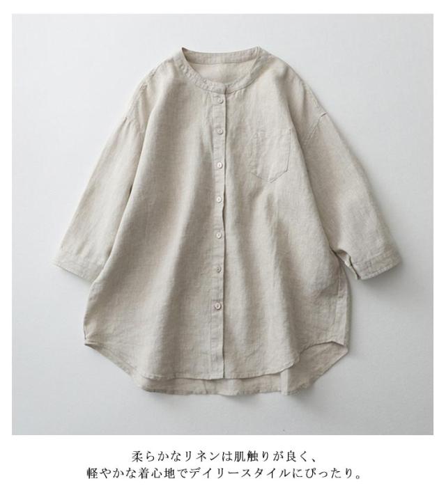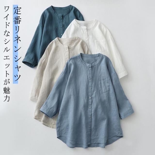 ノーカラー 七分袖 長袖 7分袖 レディース シャツ スタンドカラー リネンシャツ 大人可愛い コットンシャツ 綿麻 クルーネック ブラウス トップス リネンシャツ 夏 春秋 大きいサイズ ゆったり 柔らか カジュアル おしゃれ