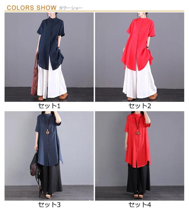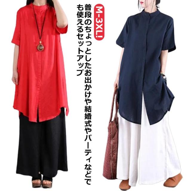体型カバー セットアップ トップス 上下セット リラックス 夏 × レディース ブラウス 上品 婦人服 大人 夏服 ワイドパンツ 夏 春 お洒落 40代 春先 セットアップ きれいめ ミセス 着回し 50代 60代 レディースファッション 半袖 お出かけ お洒落 通勤