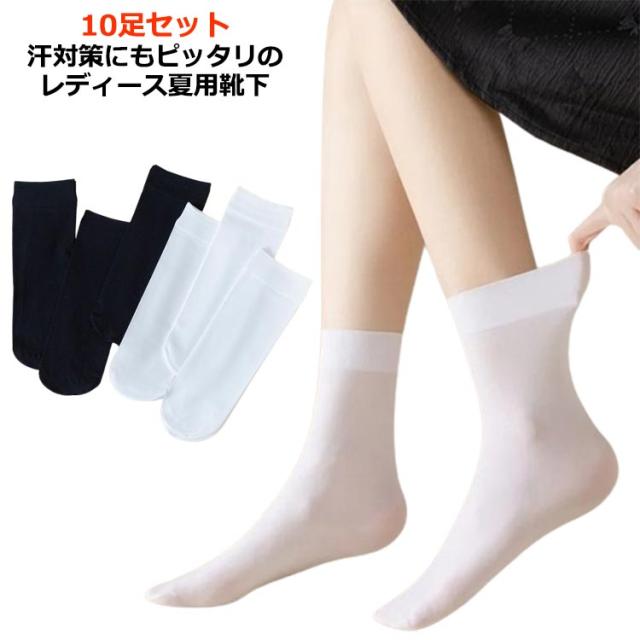 くつした 蒸れない 靴下 女性用 シースルーソックス クルーソックス 涼しい レディース メッシュ 韓国 透け 通気性 婦人 くつ下 カジュアル 脱げない ストッキング おしゃれ 10足セット ルームソックス リブ 伸縮 お洒落 春 夏 ホワイト ブラック