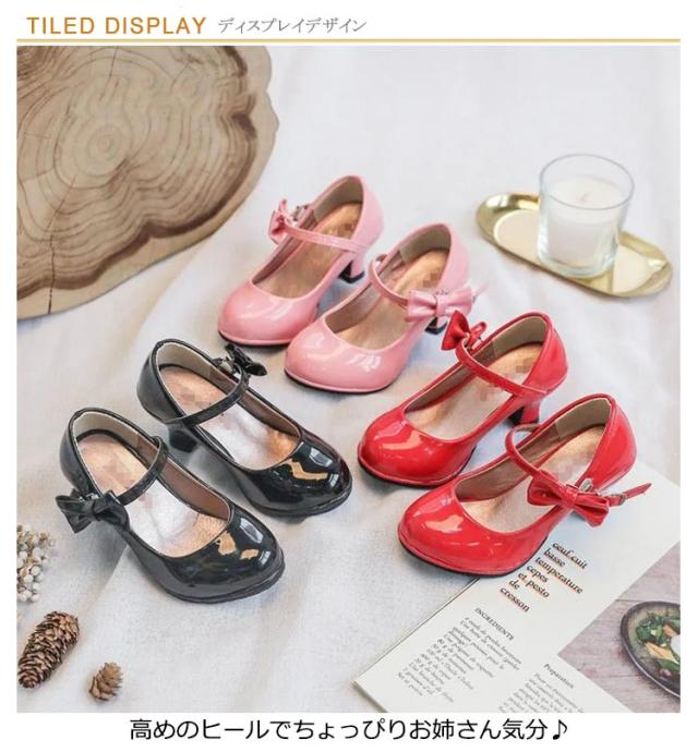 子供靴 キッズ フォーマルシューズ プリンセス フォーマル靴 エナメルストラップシューズ ハイヒール キッズ ガールズ パンプス キッズ ダンスシューズ リボン付きフォーマル靴 ハロウィン 仮装 コスプレ 女の子 プレゼント 入学式 結婚式 卒業式 発表会