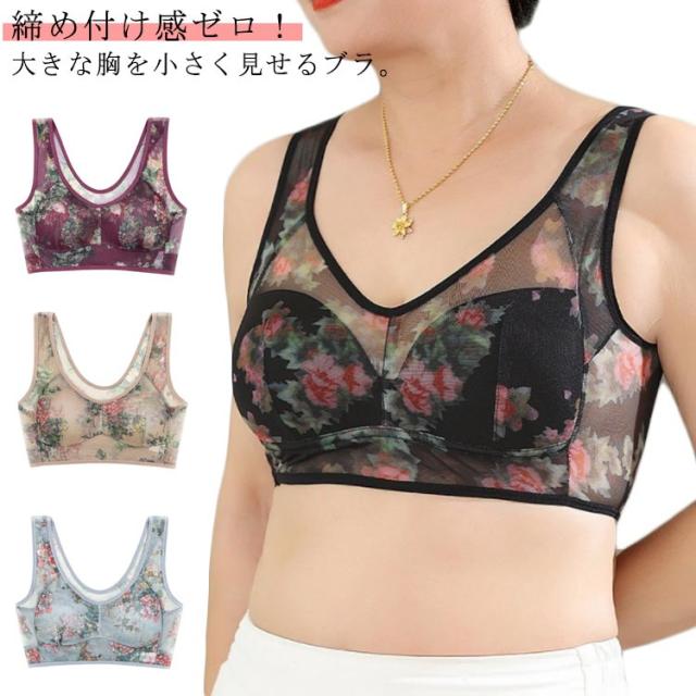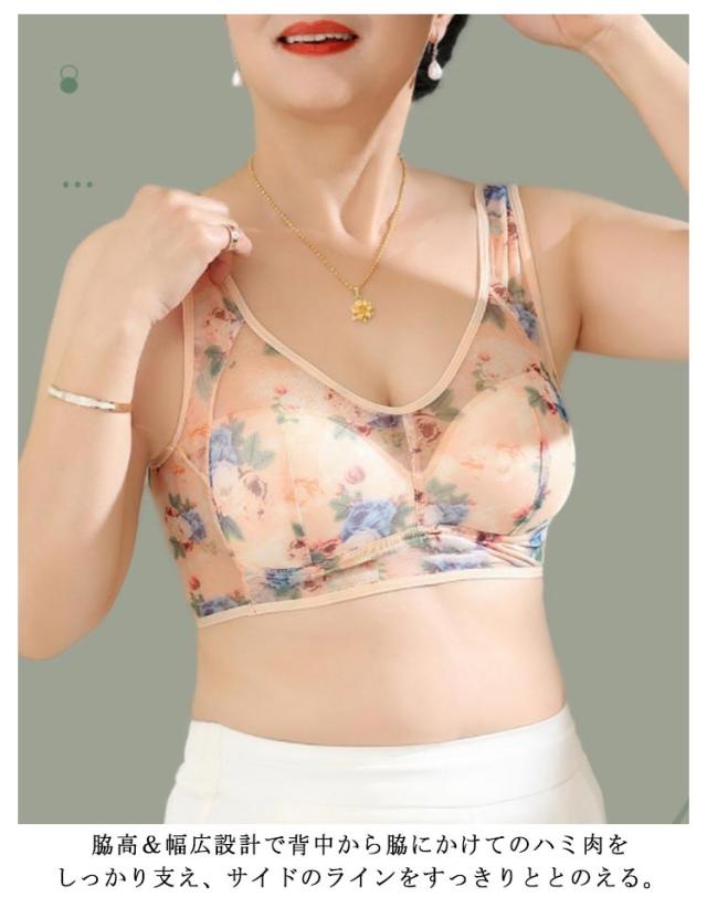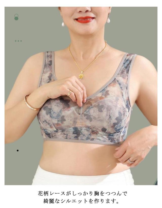 ブラジャー 大きめ ゆったり タンクトップ 下着 ワイヤレス ブラジャー シームレス ママ ブラ ブラトップ 中高年 夜間 総柄 花柄 通気 夏 ナイトブラ 弾力 ストレス 脇高 締め付けない 30代 40代 50代 60代 母の日