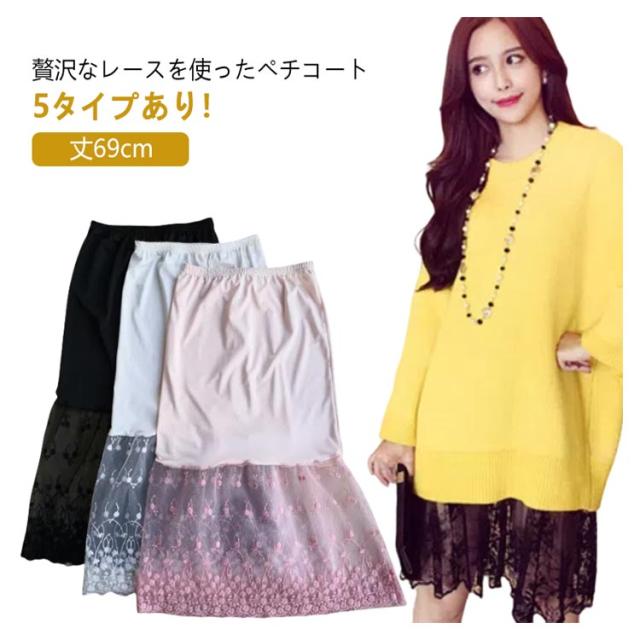 | 5タイプあり! 丈69cm 贅沢なレースを使ったペチコート♪ | |