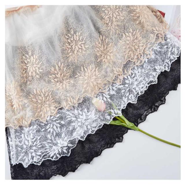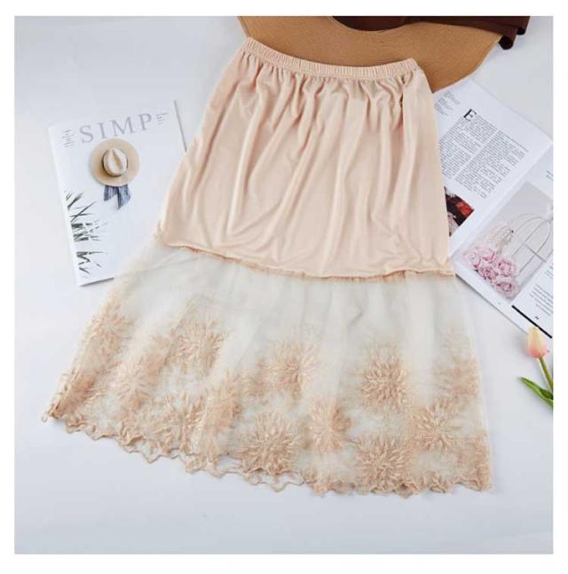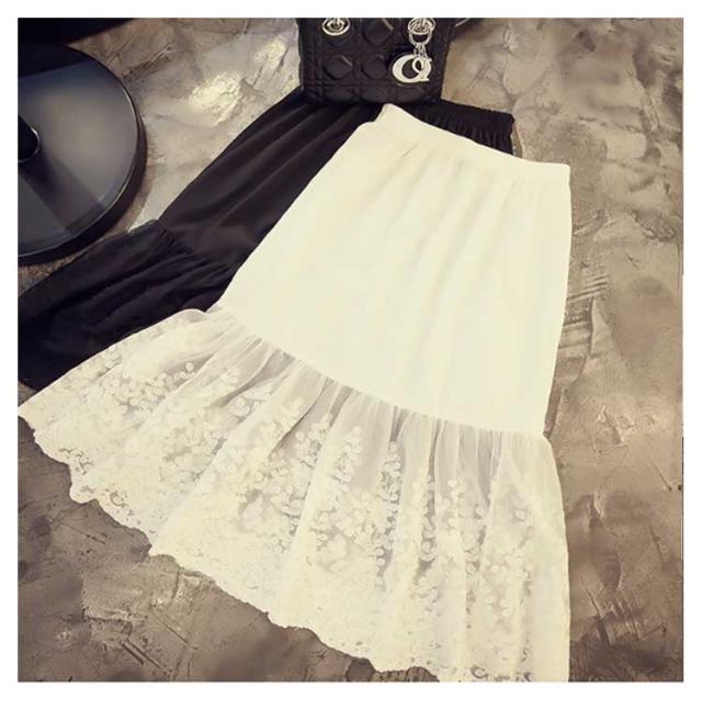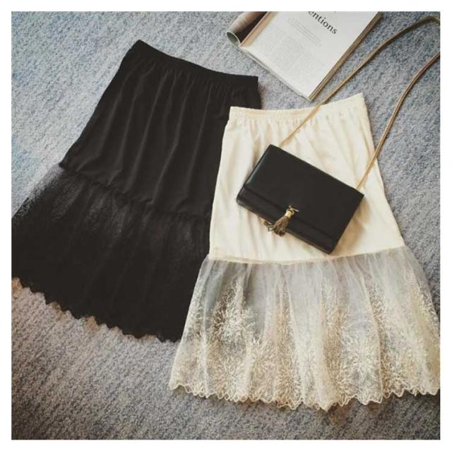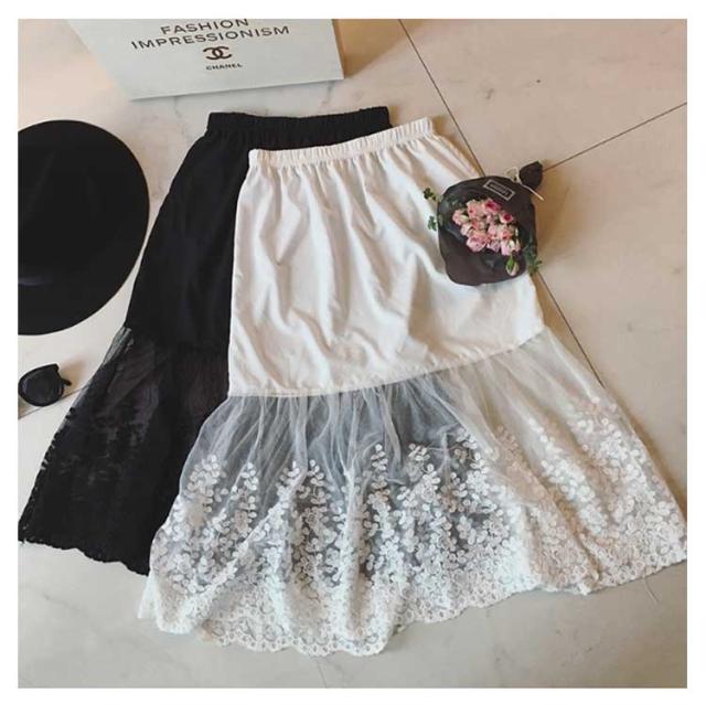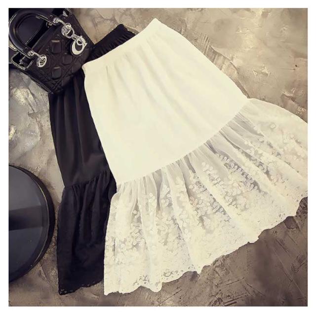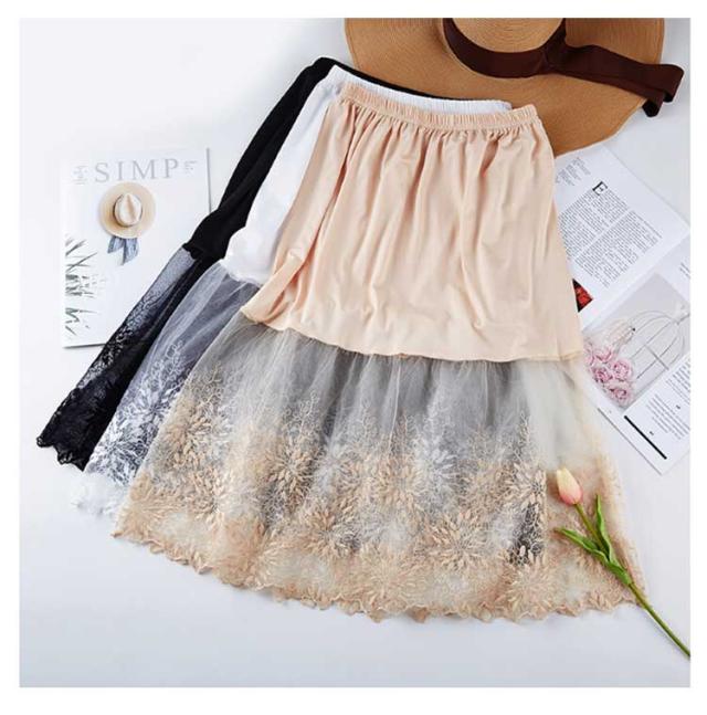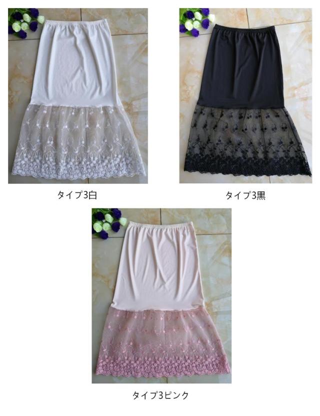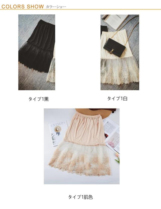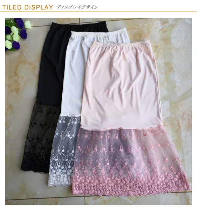 ウエストゴム インナー 刺繍 丈69cm ミモレ丈 ロングスカート スカート レースペチコート ペチコート チュール ボトムス レディース 大人可愛い スカート ドレスインナー チラ見せ 下着 スカート ホワイト 裾ふんわり インナースカート フェミニン 送料無料 黒