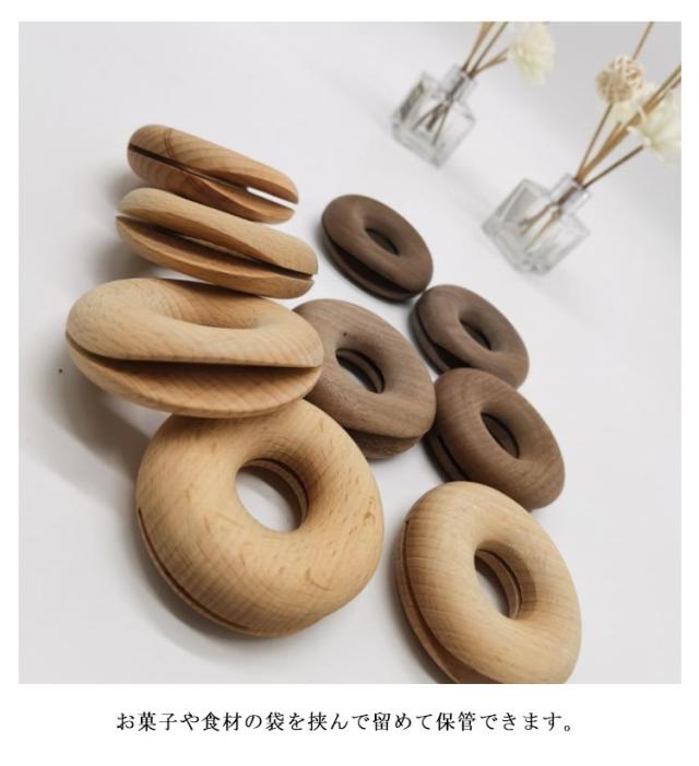 | ドーナツ型のかわいいウッドクリップ お菓子や食材の袋を挟んで留めて保管できます。 ナチュラルテイストのやさしいデザインでお部屋に馴染みやすく、 そのままインテリアオブジェとして飾ってもいいですね | |