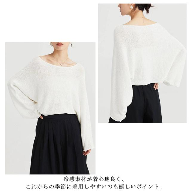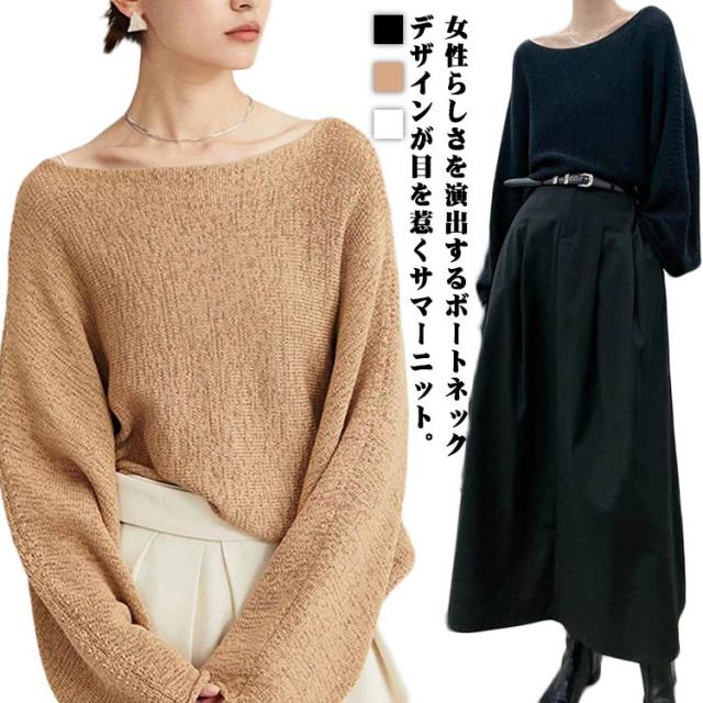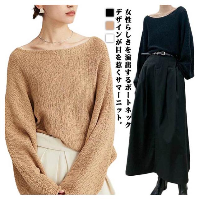 サマーニット Tシャツ ボートネック 冷感 レディース ニット 接触冷感 ニットトップス カジュアル カットソー ニットソー ゆったり ボートネック きれいめ エレガント M L XL