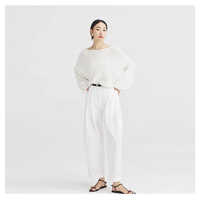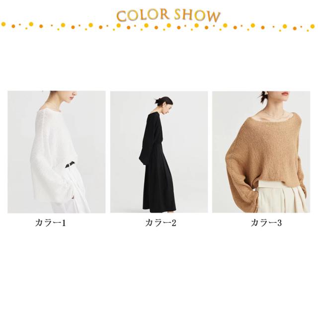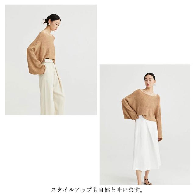 | 女性らしさを演出するボートネックデザインが目を惹くサマーニット。 スタイルアップも自然と叶います。 全3色×3サイズ、着回しがしやすいです。 シンプル無地タイプでパンツでもスカートでも、合わせやすく、ロングシーズン大活躍間違いなし。 冷感素材が着心地良く、これからの季節に着用しやすいのも嬉しいポイント。 | |
