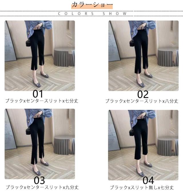 ハイウエス パンツ レディース センタースリット ロングパンツ フレアパンツ ボトムス ストレッチパンツ サイドスリット フレア パンツ 七分丈 クロップドパンツ 九分丈 セレモニー 着痩せ 美脚 楽ちん きれいめ 春 夏