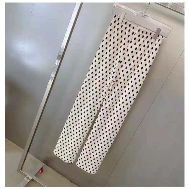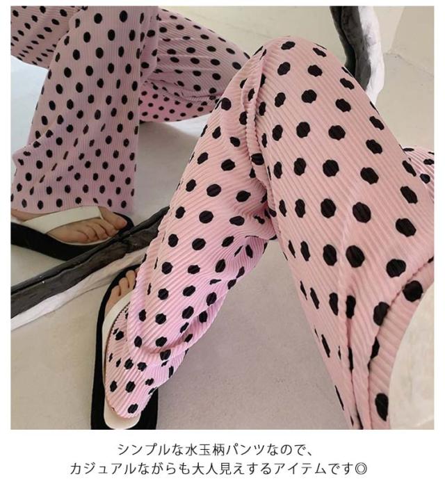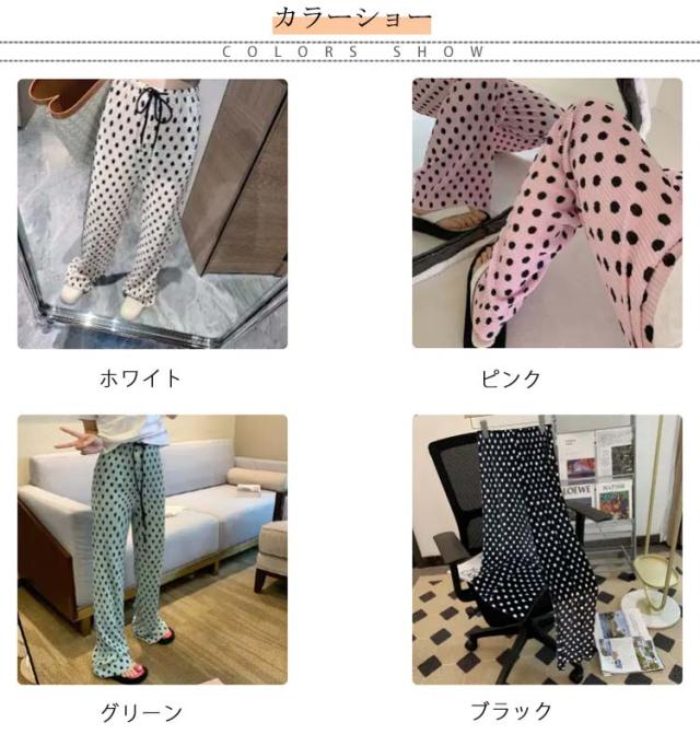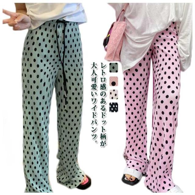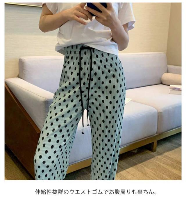 美シルエット ワイドパンツ ボトムス ドット柄 レディース ガウチョパンツ プリーツ ガウチョパンツ ロングパンツ ロング丈 春パンツ 水玉 大きいサイズ 涼しい 長ズボン ストレート ゆったり ワイドパンツ カジュアル ウェストゴム 春夏 薄手