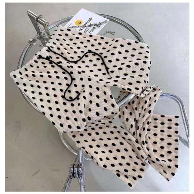 | レトロ感のあるドット柄が大人可愛いワイドパンツ。 速乾&涼感のあるサラてろ素材で汗ばむ日でも快適。 伸縮性抜群のウエストゴムでお腹周りも楽ちん。 幅の異なるランダムプリーツ加工が施されており、凹凸感のある柔らかな素材が履き心地も抜群! シンプルな水玉柄パンツなので、カジュアルながらも大人見えするアイテムです◎ 広がり過ぎないストレートシルエットが大人な雰囲気を演出してくれるので、ラフすぎないスタイリングにも!!旬なレイヤードスタイルとも相性抜群ですよ☆ | |