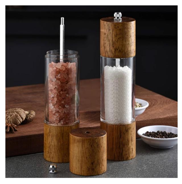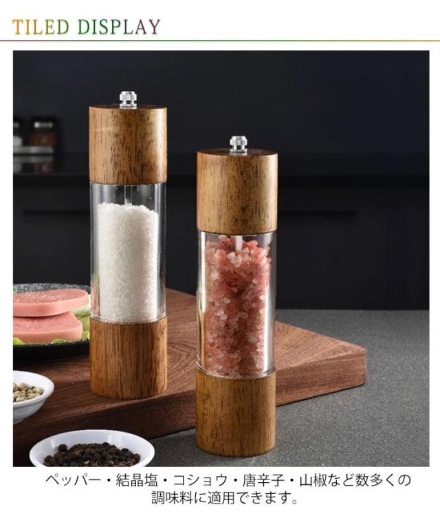 | 2本セット+受け皿!ウッド調とガラス風の組み合わせ、インテリアにも馴染みやすく、食卓をおしゃれな雰囲気にしてくれます。 ペッパー・結晶塩・コショウ・唐辛子・山椒など数多くの調味料に適用できます。 粗め・ 細かめとお料理によって使い分けることも可能です。上部にあるダイヤルを回すことで簡単にお好みの粒の大きさに変えることができます 硬くて丈夫で切れ味のいいセラミック製の刃を使用しているので錆の心配もなく塩 ・ 胡椒の香りを保ちやすいので良い風味が楽しめます。 | |