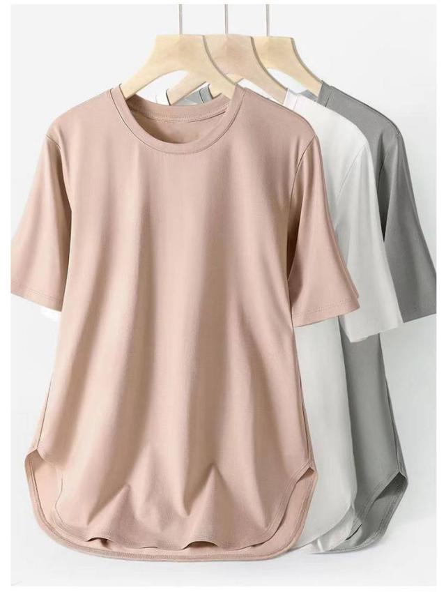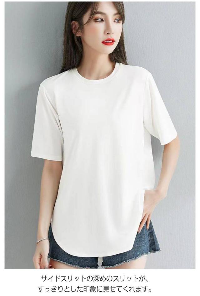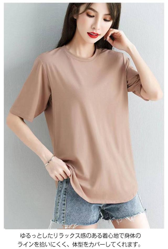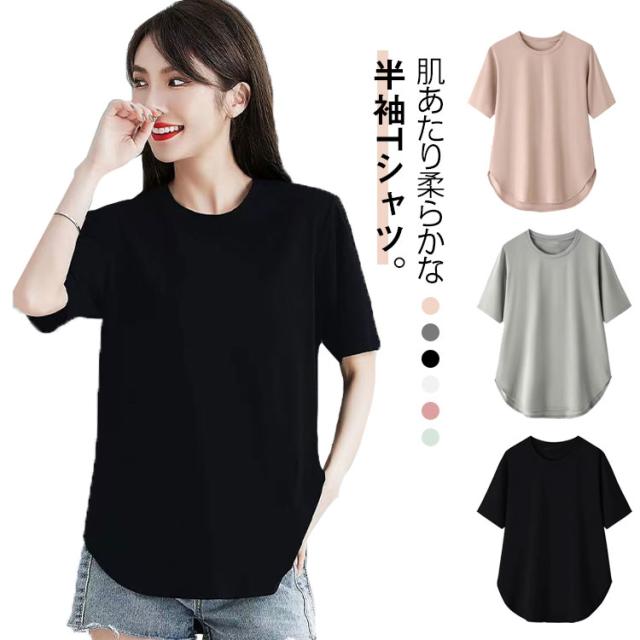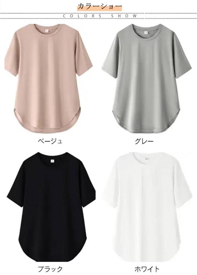 トップス 半袖 半袖Tシャツ ラウンドテール カットソー きれいめ レディース テールカット 無地 Tシャツ 半袖tシャツ ゆったり 無地tシャツ チュニック 20代 30代 40代 ベージュ グレー ブラック ホワイト ピンク