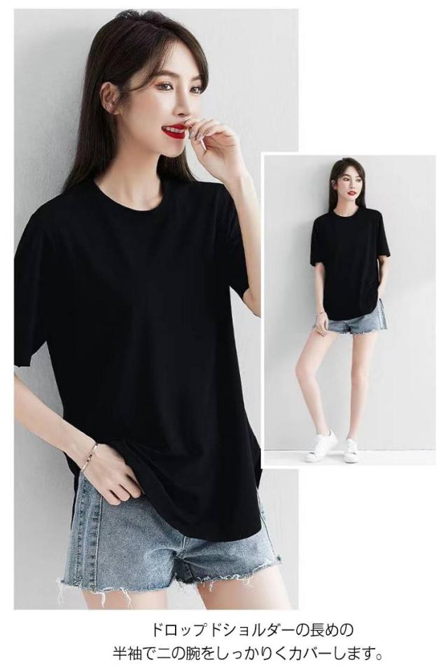 | 肌あたり柔らかな半袖Tシャツ。 ネックラインをすっきりさせたクルーネック。 ドロップドショルダーの長めの半袖で二の腕をしっかりくカバーします。 ラウンドテールの裾は1枚で着ても様になりレイヤードスタイルにも活躍するデザイン。 サイドスリットの深めのスリットが、すっきりとした印象に見せてくれます。 ゆるっとしたリラックス感のある着心地で身体のラインを拾いにくく、体型をカバーしてくれます。 全6色の豊富なカラー展開なので、色違いでおすすめしたい一枚。 | |