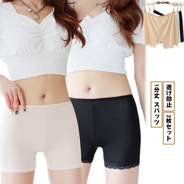 ペチコート 1分丈 レディース スパッツ オーバーパンツ 夏用 ペチパンツ インナー パンツ インナーパンツ ペチパン 透け防止 2枚セット レギンス 蒸れない ムレにくい 透けない 通学 通勤 ストレッチ シームレス ショーツ 接触冷感