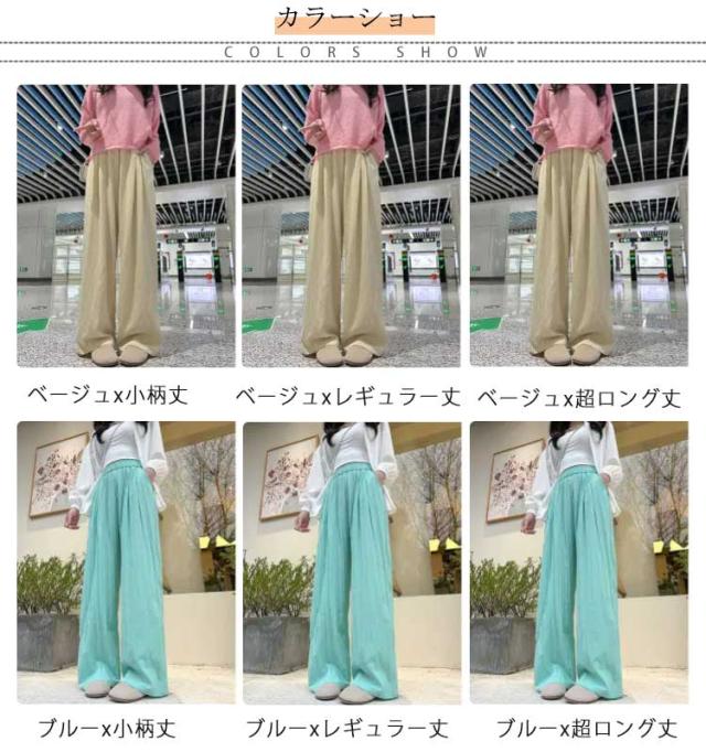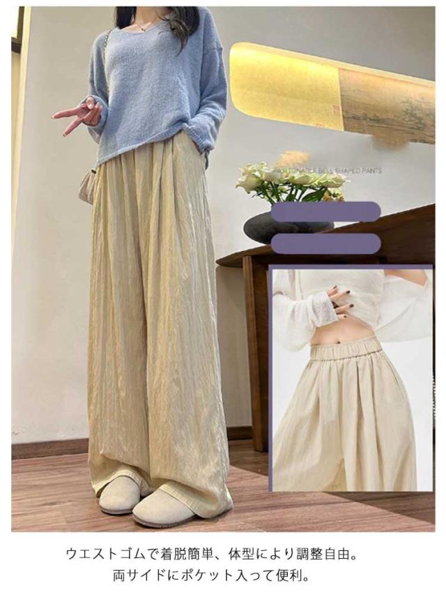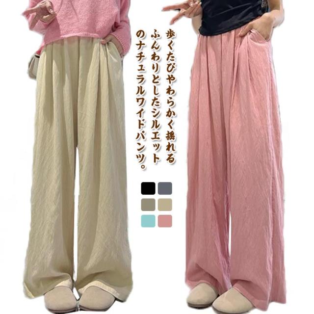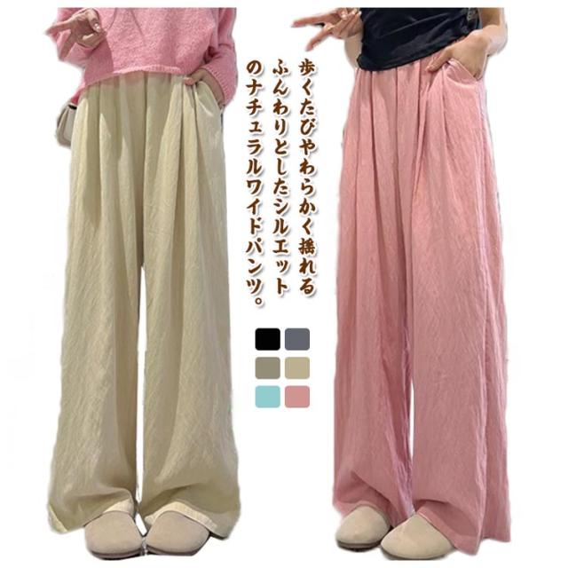レディース ゆったり 小柄丈 ワイドパンツ ギャザースラブパンツ ゴムウエスト スカーチョ シンプル 涼しい スカートパンツカラーパンツ 体型カバー動きやすい ガウチョ イージーパンツ オシャレ 大人 春夏 無地 低身長 高身長 ギャザーパンツ レギュラー丈