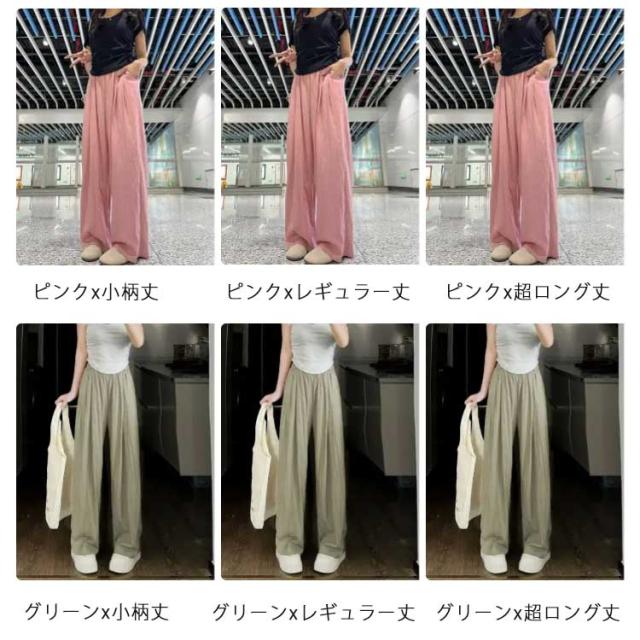 | 歩くたびやわらかく揺れるふんわりとしたシルエットのナチュラルワイドパンツ。 小柄丈、レギュラー丈、超ロング丈の3タイプ展開でご自身に合ったサイズ感をお選び頂けます。 ウエストゴムで着脱簡単、体型により調整自由。両サイドにポケット入って便利。 たっぷりワイドシルエットで気になるラインを隠しながら細見え叶う。 涼しげな素材感とナチュラルな質感の風合いがあって、サラッとした穿き心地です。 ルーズめなトップス、カジュアルなTシャツ、キレイ目コーディネート、幅広く着まわしできます。 | |