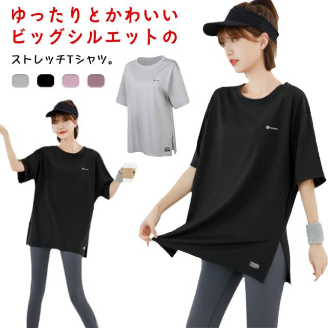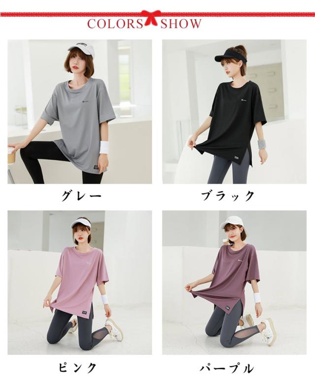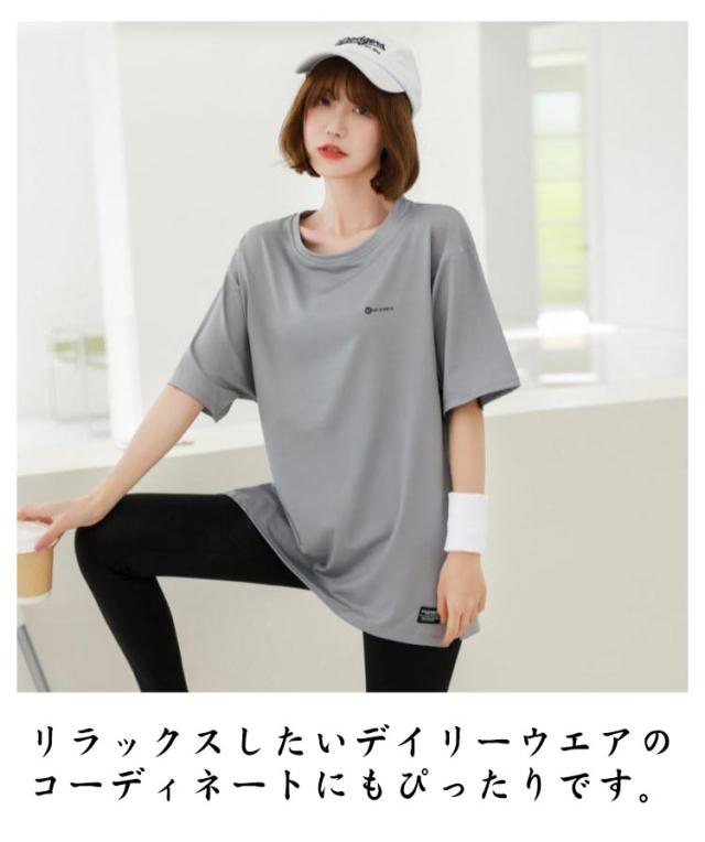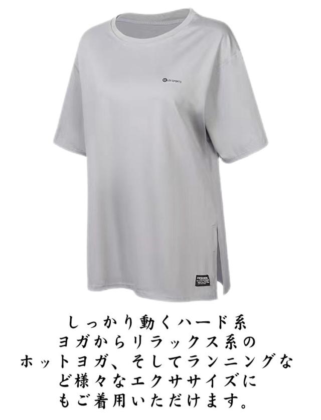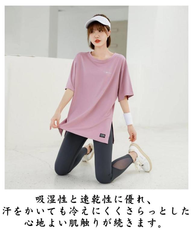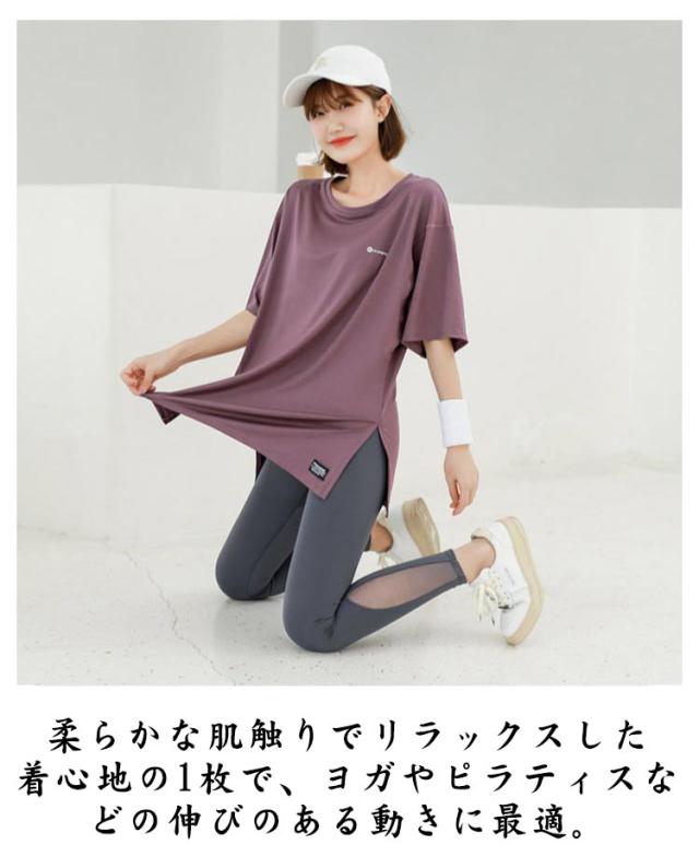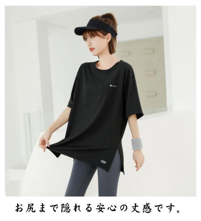 Tシャツ レディース ヨガウェア トップス 半袖tシャツ ロング丈 Tシャツ スポーツウェア ヨガ ホットヨガ ピラティス フィットネスウェア トレーニングウェア ゆったり ストレッチ かわいい 長め 体型カバー ジムウェア エクササイズ 速乾 送料無料