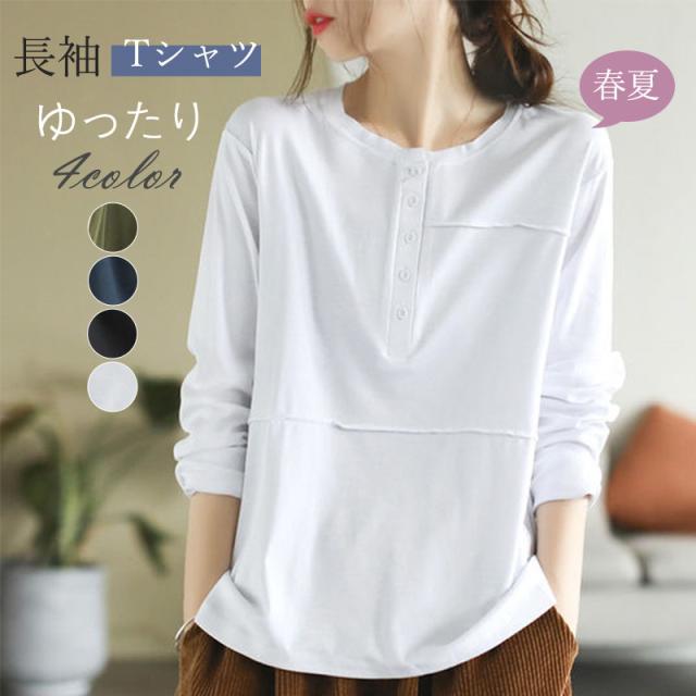tシャツ レディース 長袖 トップス 長袖tシャツ カットソー ブラウス 無地 大きいサイズ カジュアル ゆったり 通勤通学 おしゃれ
