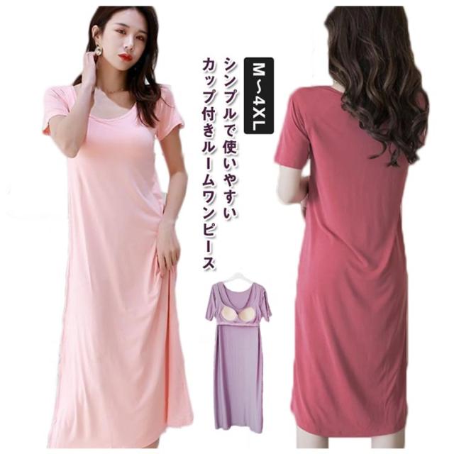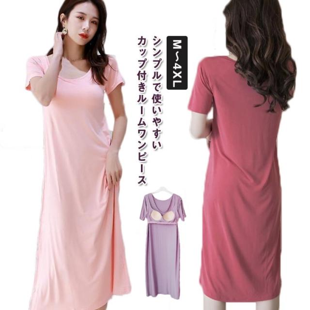 部屋着 かわいい ルームワンピ 半袖 ロング丈 ルームウェア 夏 春 カップ付き 無地 ルームワンピース 半袖 シンプル 女性服 涼しい ワンピース 薄手 かわいい きれいめ 部屋着 ワンピース パジャマ 肌触り抜群 おうち時間 大きいサイズ 体型カバー 母の日 ギフト