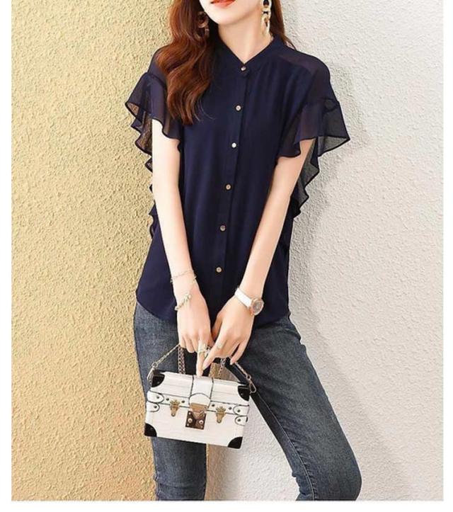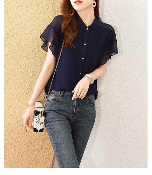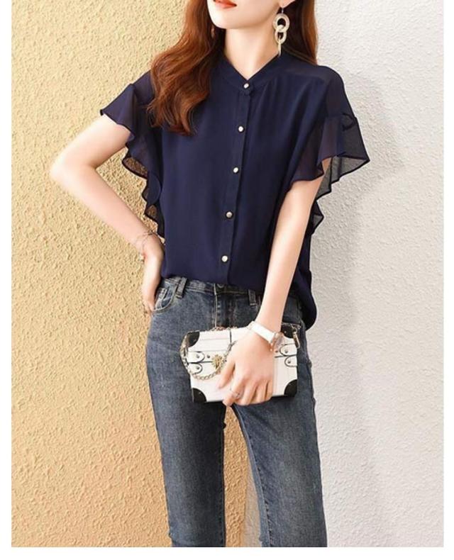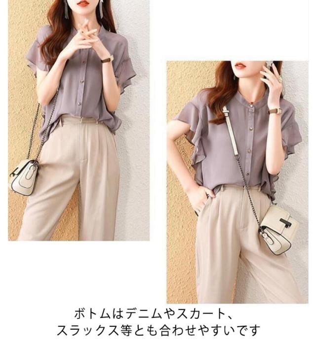 | ふんわり可憐な印象のフリル袖が大人可愛い。 何にでも合わせやすいシンプルデザインのシフォンブラウスです♪ 柔らて通気性の優れた素材で着心地が快適! ボトムはデニムやスカート、スラックス等とも合わせやすいです。 普段着としてだけでなく、オフィスコーデなどのフォーマルなシーンなどにも使える。 | |