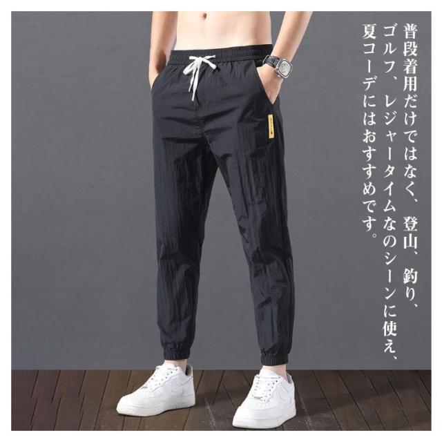 パンツ 冷感パンツ テーパードパンツ アイスシルク メンズ ストレッチ 涼しい ウエストゴム ズボン イージーパンツ ロングパンツ ボトムス 接触冷感 無地 ゴルフパンツ 速乾 カジュアル 蒸れない ひんやり 涼しい